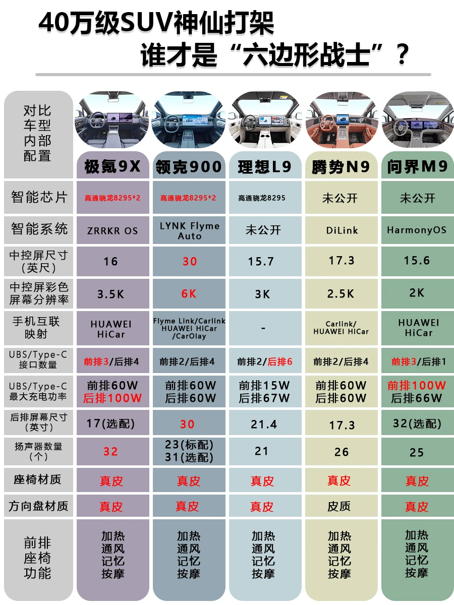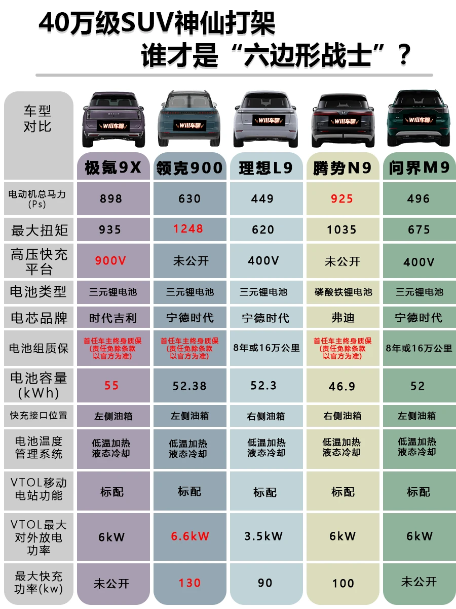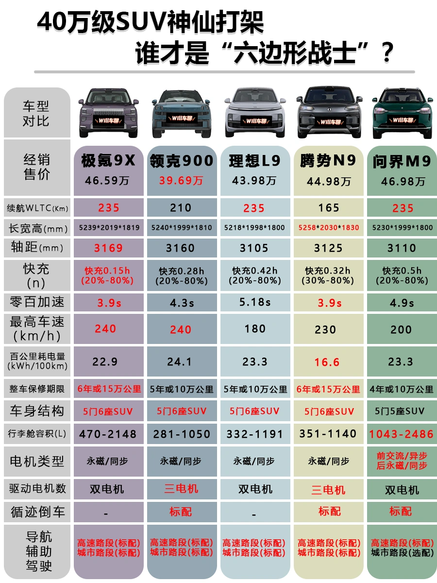 SUV 汽车推荐 汽车薯 极氪9X 领克900 理想L9 腾势N9 问界M9