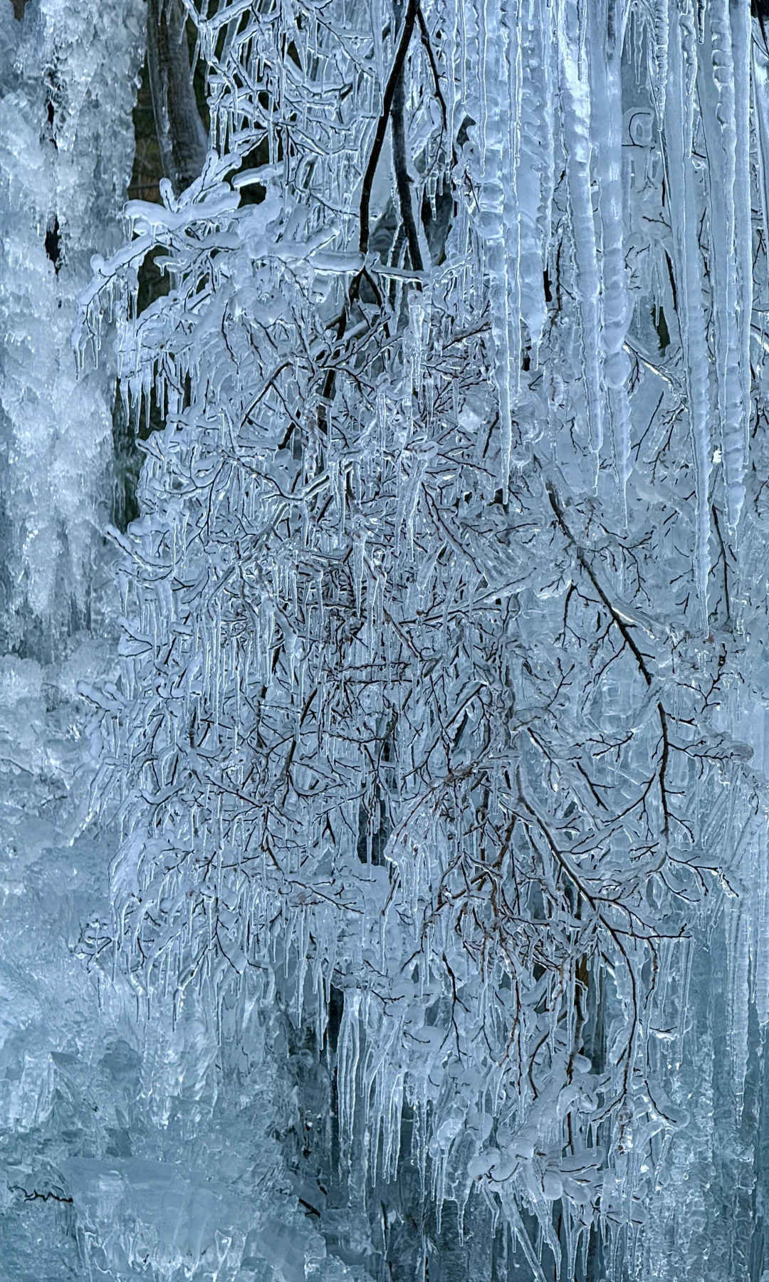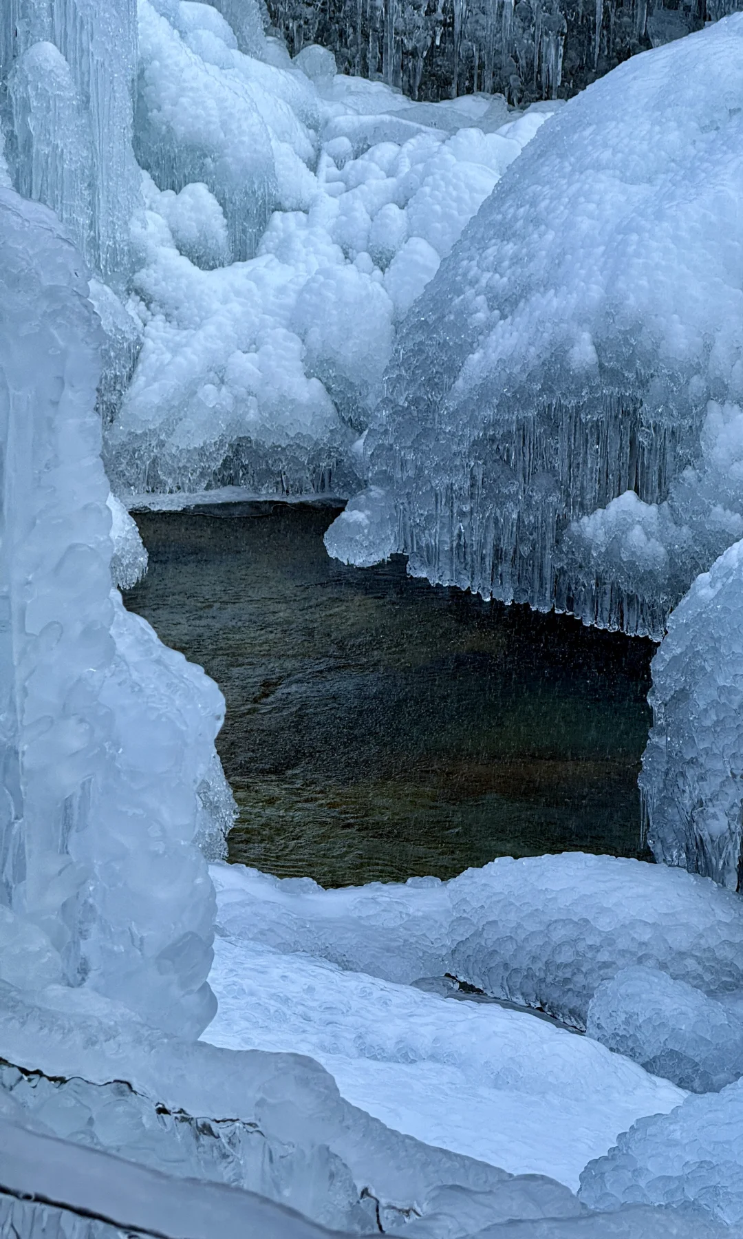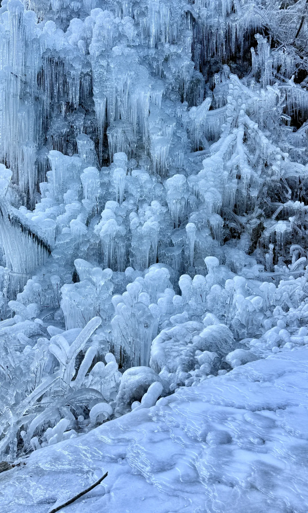 山上还有个大冰瀑,因为我没戴冰爪,实在不敢再继续向上爬,就返回了😭