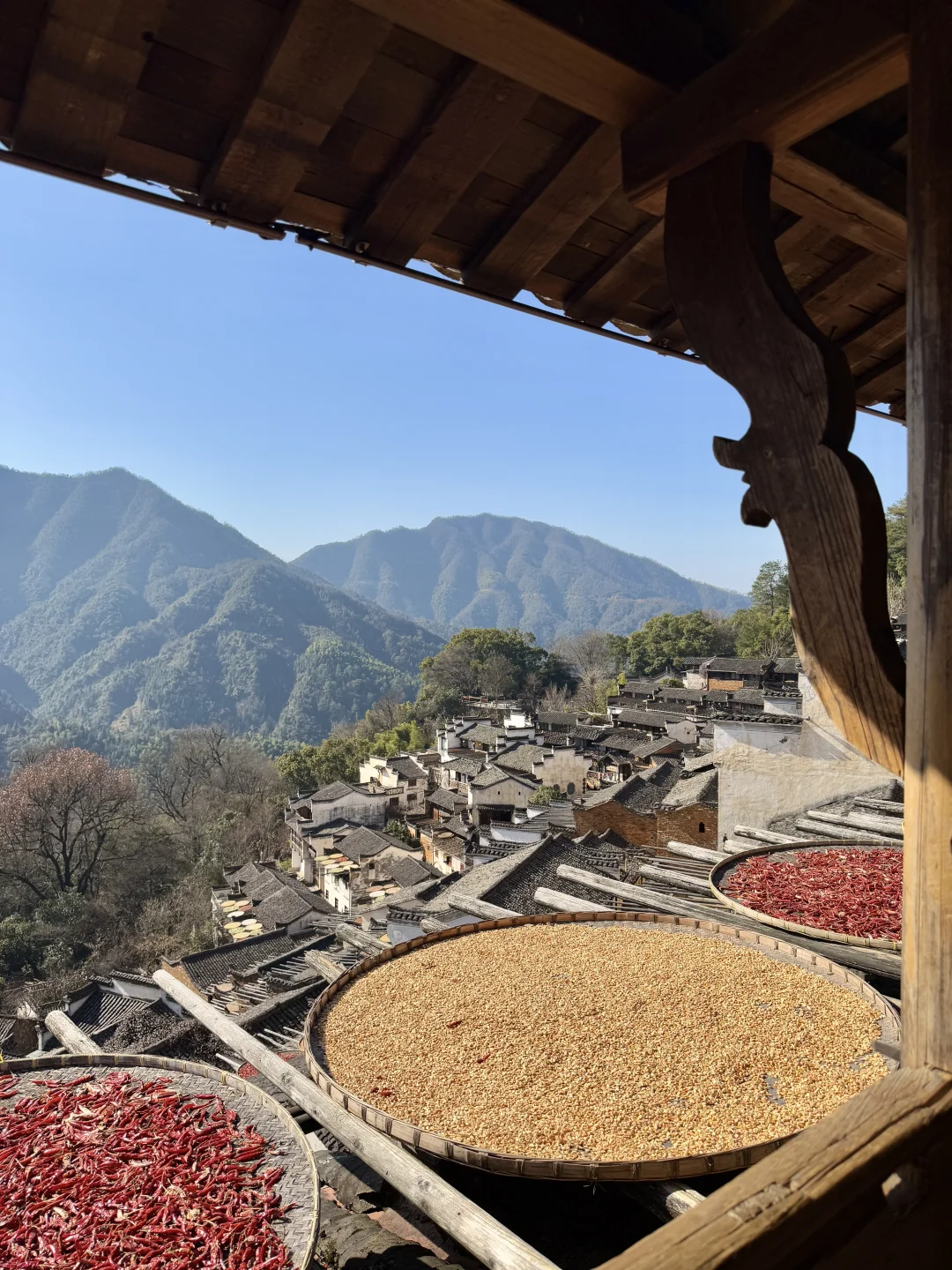 1️⃣ 晒工坊三楼 - 经典视角,俯瞰整个古村晒秋场景
