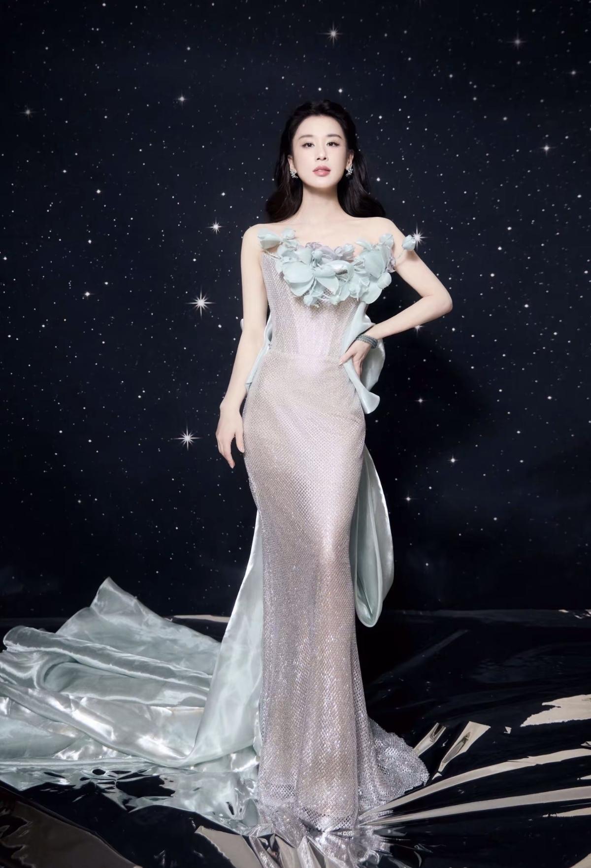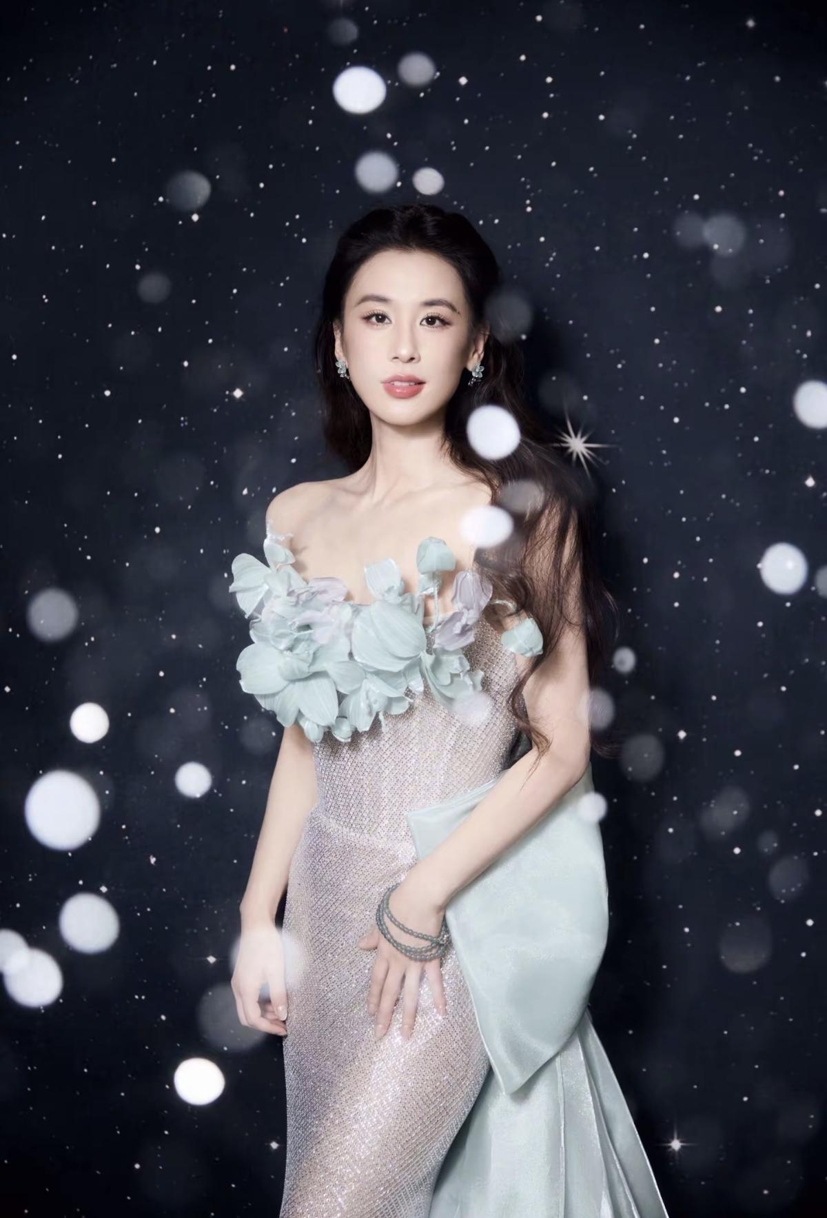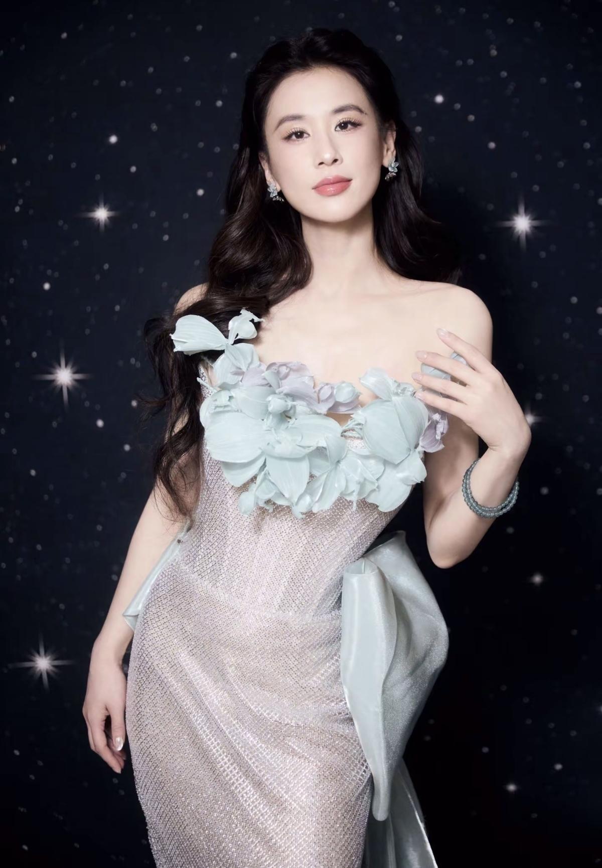 一袭抹胸透肉长裙,将明艳与妩媚拿捏得恰到好处,裙摆轻垂间,尽是风情万种的高级韵致