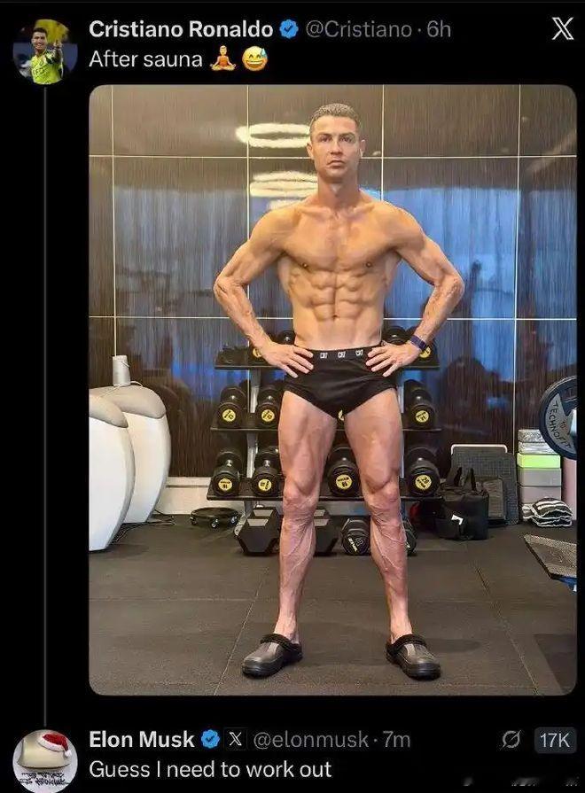 40岁C罗又拿奖了!连续三年获中东最佳球员上赛季的欧冠和法甲冠军巴黎圣日耳曼收获颇丰,获得7项大奖,其中登贝莱力压亚马尔,获得最佳男足球员。亚马尔则是收获了最佳前锋和最佳U23球员两项大奖。环球足球奖(简称环足奖),于2010年在迪拜创立,由欧洲足球经纪人协会和欧洲足球俱乐部协会主办,每年年底或次年年初会进行一次颁奖典礼。创办初衷是为了表彰足球领域优秀的经纪人和俱乐部经理人,从2011年起增设了最佳球员和最佳球队等奖项。此前,40岁的C罗在社媒晒出“魔鬼身材”照片,展示清晰的肌肉线条。马斯克被惊到了,在评论区回复:“我想我需要锻炼一下了。”