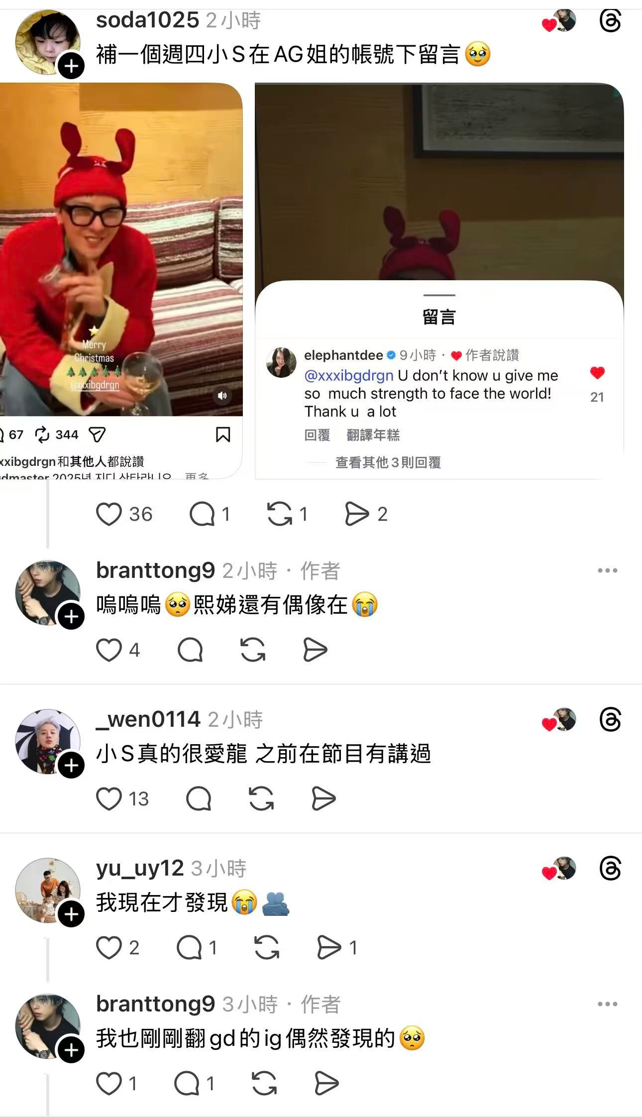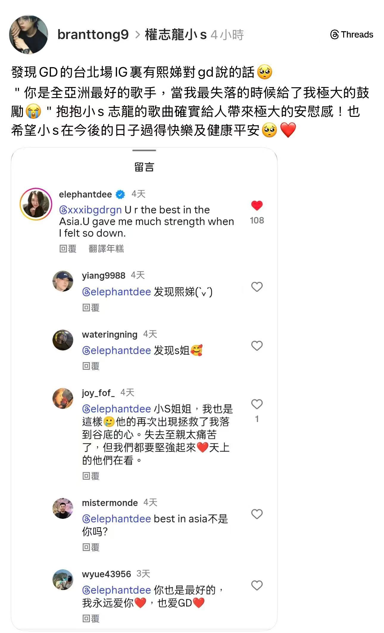 小S 深夜表白权志龙「你不知道,你给了我多大力量来面对这个世界,太感谢你了。」「
