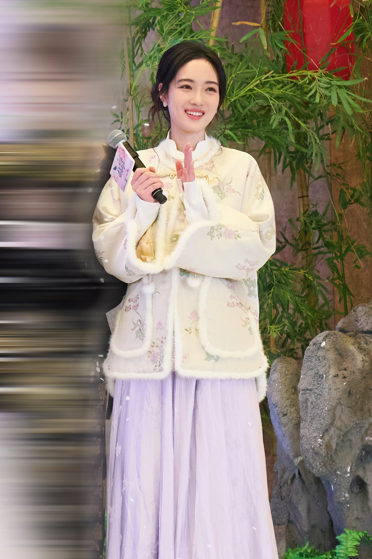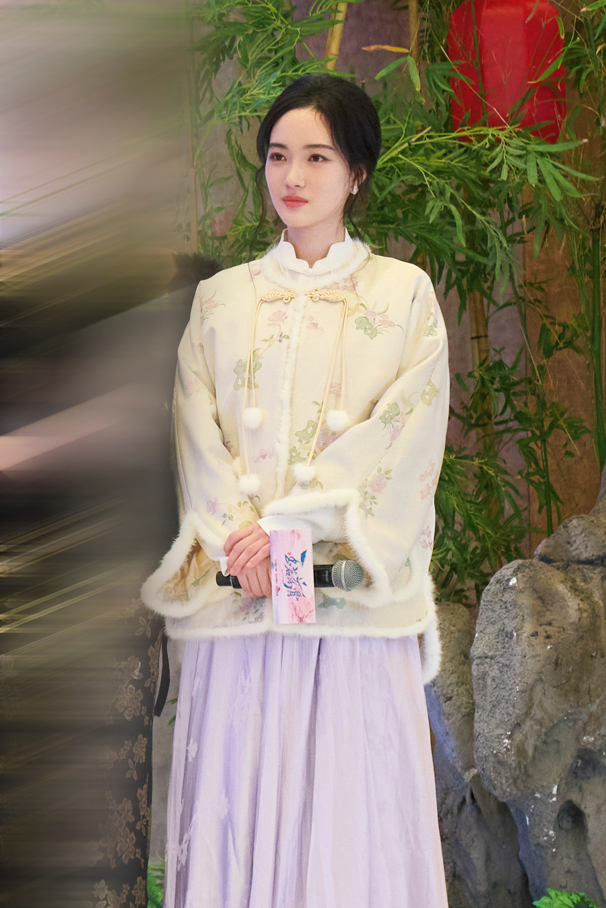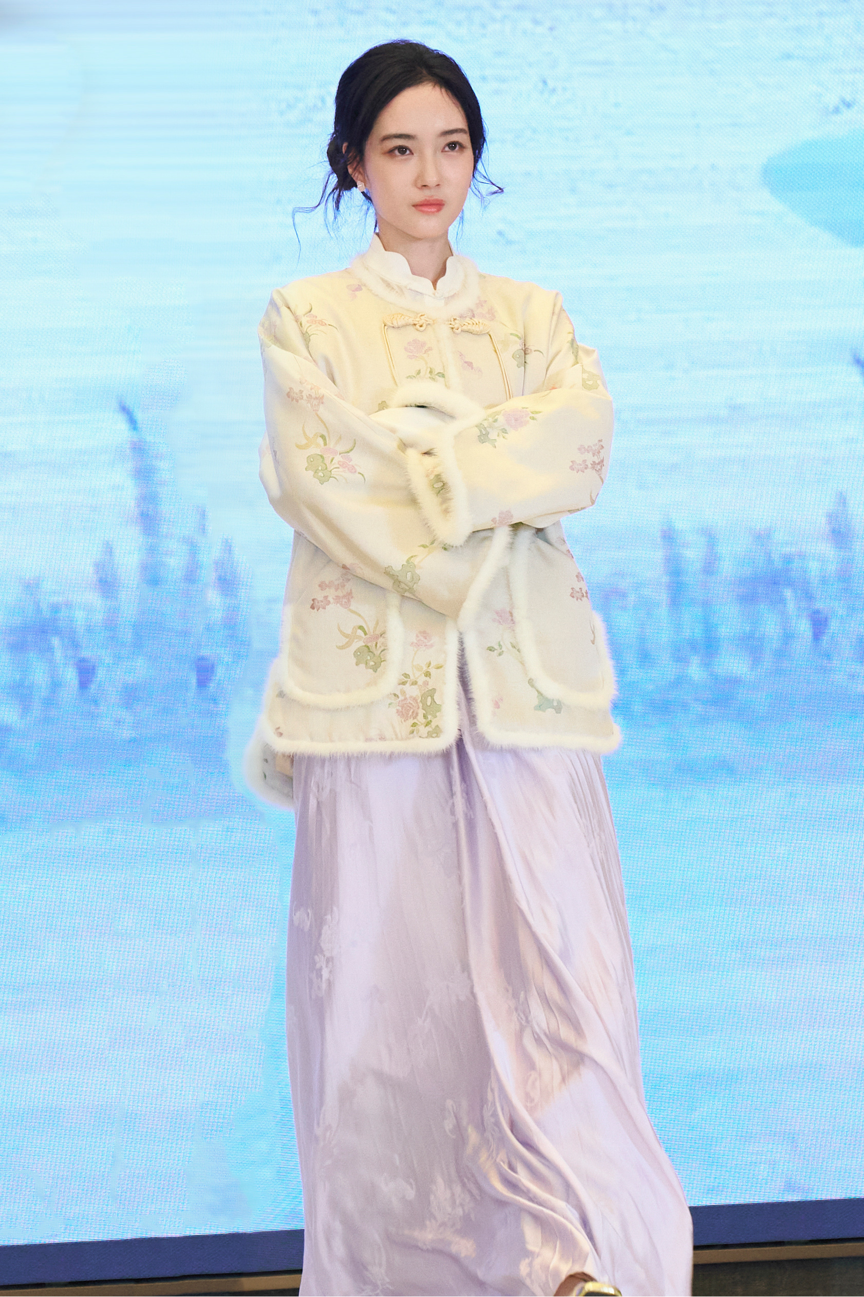 赵嘉敏新中式美人 赵嘉敏这波新中式造型美成啥了!软糯毛绒上衣温柔雅致,紫色长裙古