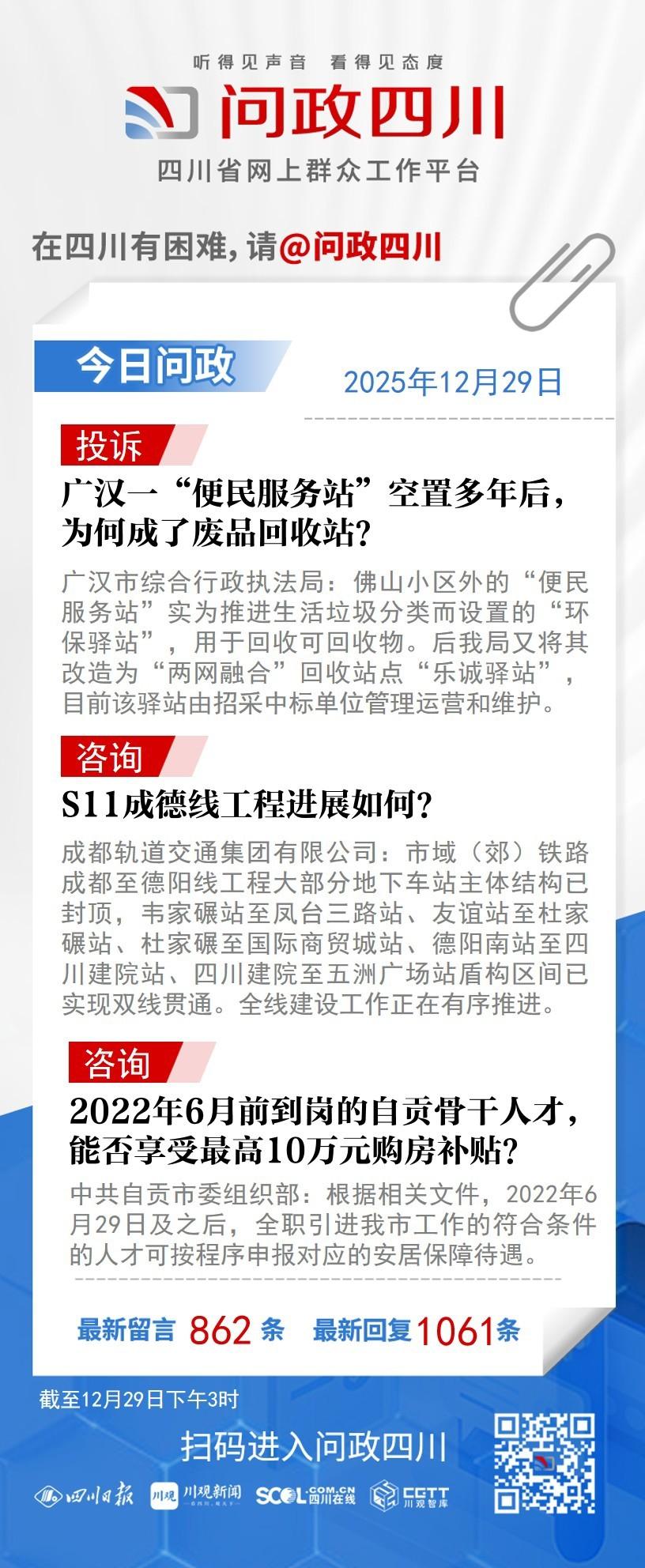 问政四川网友提问:S11成德线目前车站建设、隧道贯通情况如何?2027年能否开通?