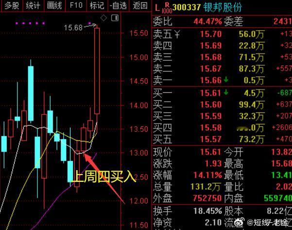 漂亮!上周四老金买入的$银邦股份 sz300337$ 刚刚13个点附近止盈获利1