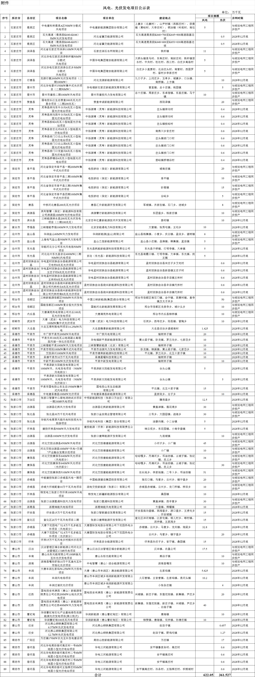 河北省2025年风电、光伏发电年度开发建设方案部分第三批拟安排项目情况公示