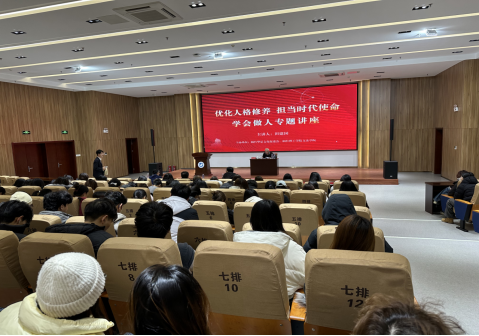 讲座中,田建国教授精准契合时代发展脉搏与青年成长成才需求,以“学会做人是立身之本、成事之基”为核心,围绕“为何做人、如何做人、做什么样的人”三大关键命题展开深入阐释。他旁征博引中华优秀传统文化精髓,从“规范做人守底线、标准做人修品德、境界做人拓格局、小事做人践初心”四个维度,辅以大量典型案例,深入浅出地剖析人格修养的本质内涵,警示做人失范的现实危害,发人深省;在实践指导层面,田教授系统传授人格提升路径,引导青年学生树立正确的世界观、人生观、价值观,勉励同学们争做有理想、敢担当、能吃苦、肯奋斗的新时代青年。整场讲座逻辑严谨、内容翔实,兼具理论高度与实践温度,赢得了在场师生的阵阵掌声,让大家接受了一次深刻的思想启迪与精神洗礼。