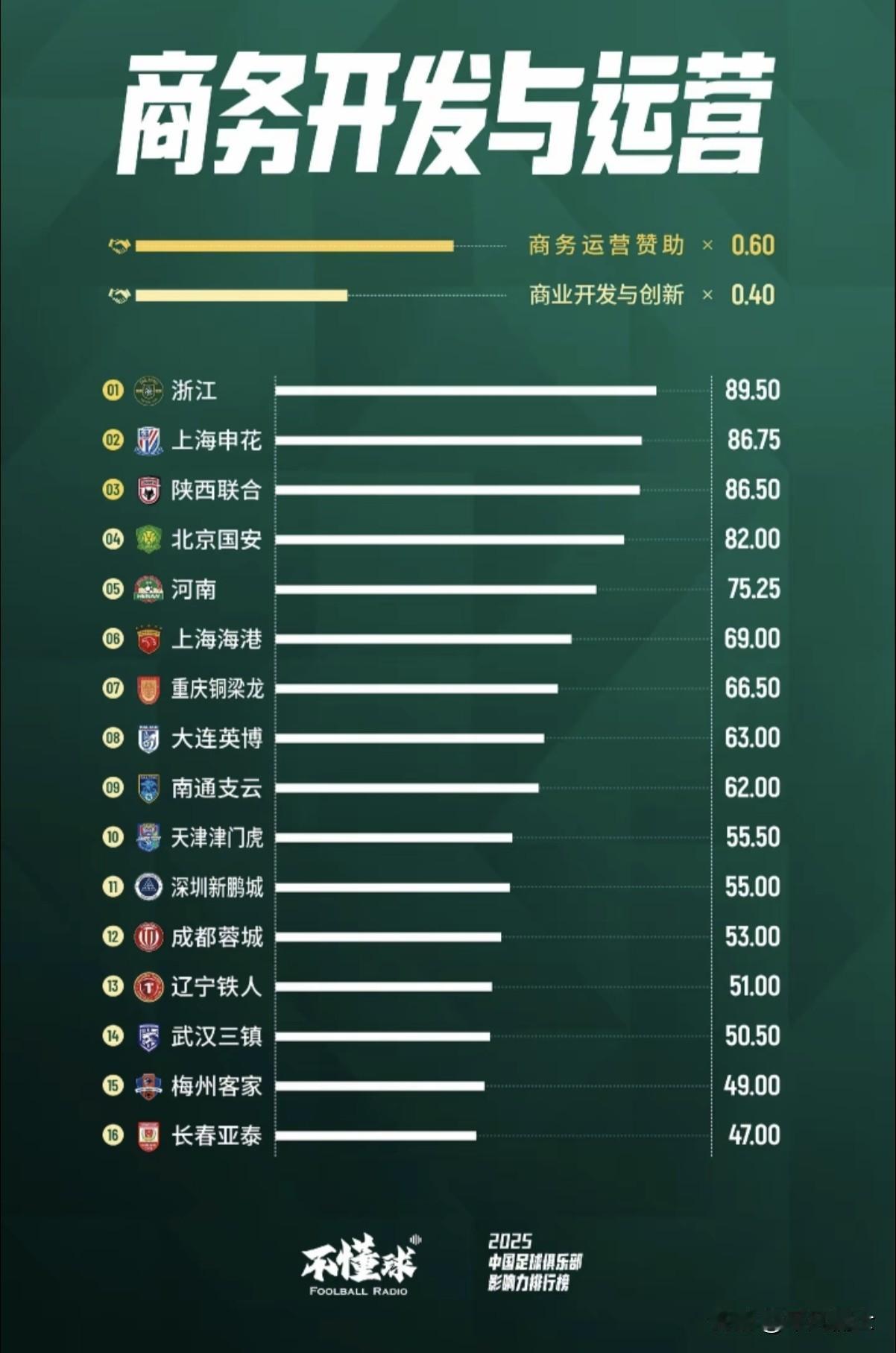 陕西联合你的光芒不要太耀眼! 俱乐部影响力竟然超越了众多中超俱乐部,这也说明陕西联合正走在一条正确的发展道路上。中足联公布了2025年度中超中甲俱乐部影响力排行榜,北京国安、上海申花、山东泰山、上海海港等位居前列,但在前16名中陕西联合、重庆铜梁龙和辽宁铁人三家中甲俱乐部竟挤掉了多家中超俱乐部而入选。 陕西联合竟然排名高达12名,其中商务开发和运营更是排名第三名,仅次于浙江和上海申花,这说明陕西联合俱乐部的商业运作是走在了中超中甲俱乐部的前列,在商务运营方面是相当成功。今年的俱乐部年度大会,更是为广大球迷描绘了明年的广阔前景,短短三两天缴费会员就超过6000人,这也说明陕西联合在球迷心中有着良好的基础,陕西球迷也愿意和俱乐部同风雨共患难。足球是一项产业,它不是只花钱的运动,还应该成为一项文化体育产业而有广阔的商业前景。就像欧洲的成熟联赛,他每年会带来巨额的收益,而不是像我们的俱乐部只有投入而缺少产出。陕西联合俱乐部的模式相信会和其他俱乐部有所不同,因为球迷的热爱,会有更多的商业伙伴加入进来,而走出一条不一样的道路。陕西球迷的心愿也很简单,就是热爱自己的球队,让球队活下去,活的很精彩,西北狼的魂永远不会散。