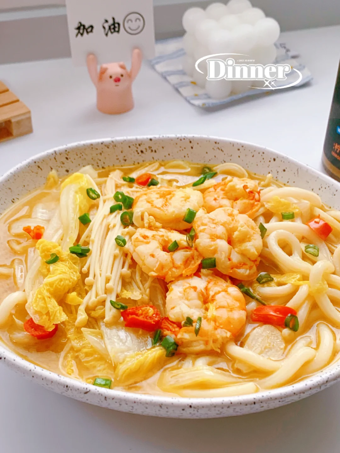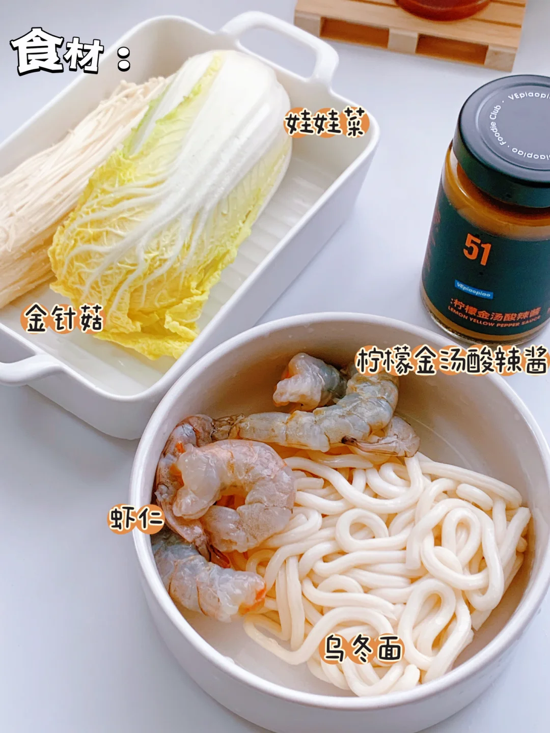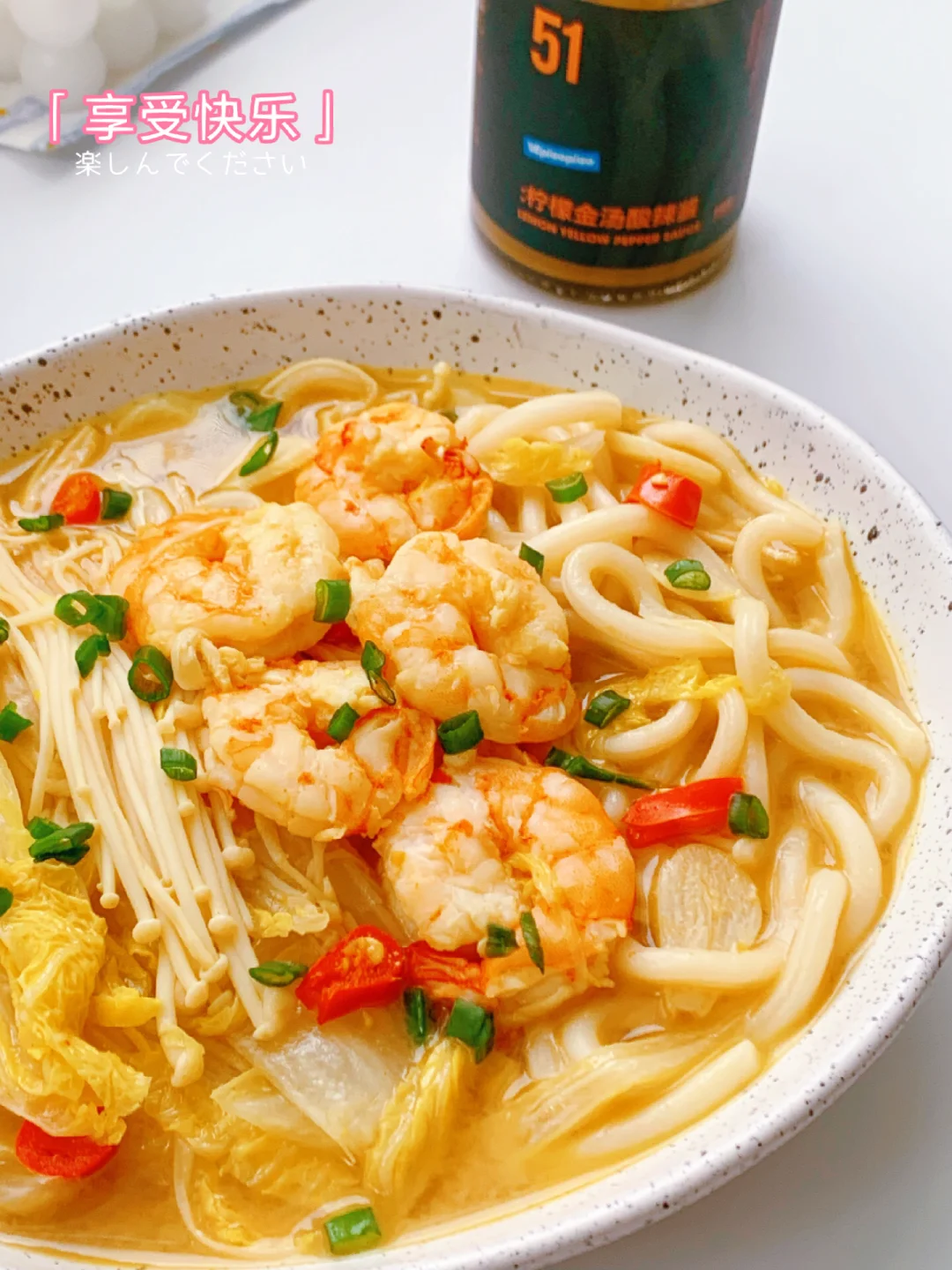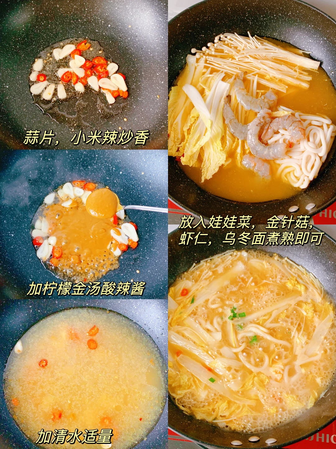 ⭐超级开胃的酸辣乌冬面,汤汁金黄,酸酸辣辣的太过瘾了❗ ~~今天给自己做了一碗乌冬面,加了VEpiaopiao的柠檬金汤酸辣酱,2.2%轻脂,不添加味精和鸡精,是用泡椒,纯粮酿造的米醋,柠檬汁组合,酸辣过瘾,还有橙黄的黄金瓜搭配金黄色的姜黄,用柠檬来提鲜,使汤汁更加清新。 食材: 主料:乌冬面,虾仁,娃娃菜,金针菇 辅料:蒜片,小米辣 [打卡R]做法见图片[打卡R]~图8️⃣ ❤小提示: ~不放盐,小伙伴可根据自己口味加盐,或者其它喜欢的蔬菜[偷笑R] ✨✨分享我的低卡日记,喜欢请关注‼️