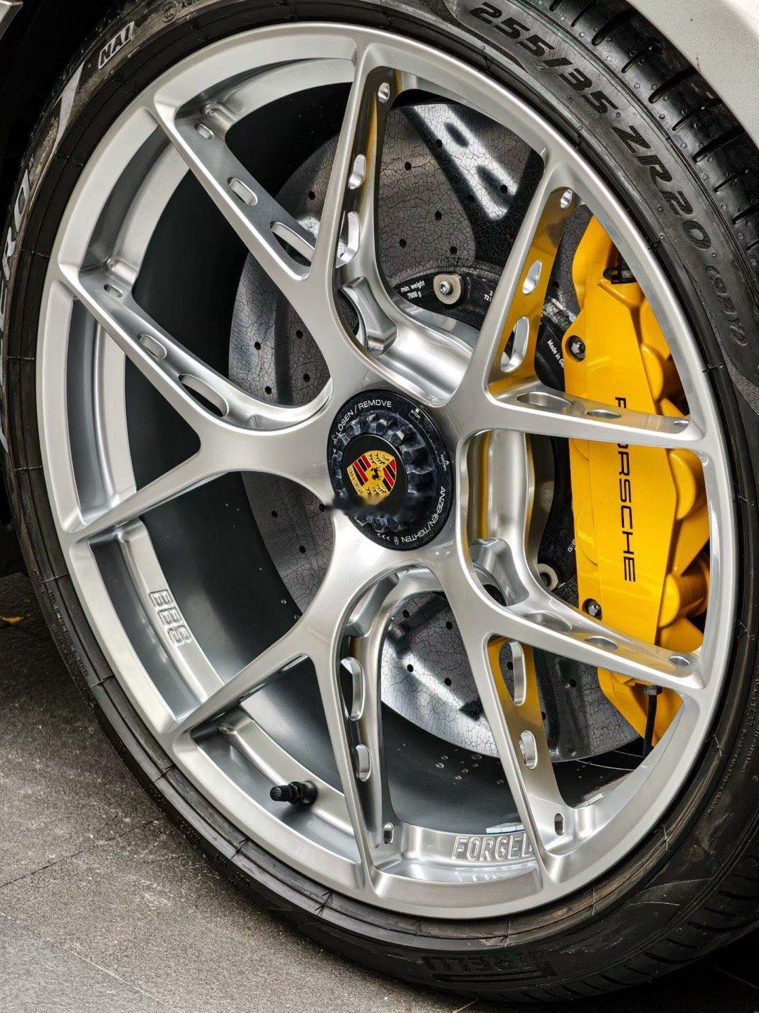 感谢VIP大哥 完工案例供参考保时捷 911 992 Turbo S 单孔BBS FIR EVO DS银 20/21寸35处镂空结构设计,超轻量化日本BBS暴力美学,极致赛道轮毂单孔中央锁止,专属于992Turbos深圳呔铃王科吉无损安装科吉动平衡可以约起来了喂!