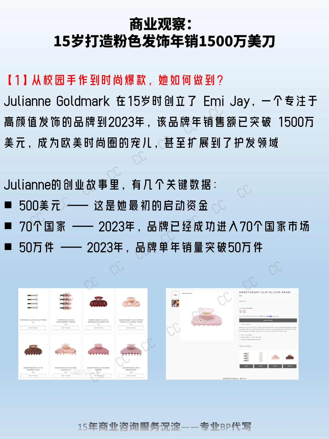 一个专注于高颜值发饰的品牌到2023年,该品牌年销售额已突破 1500万美元,成为欧美时尚圈的宠儿,甚至扩展到了护发领域