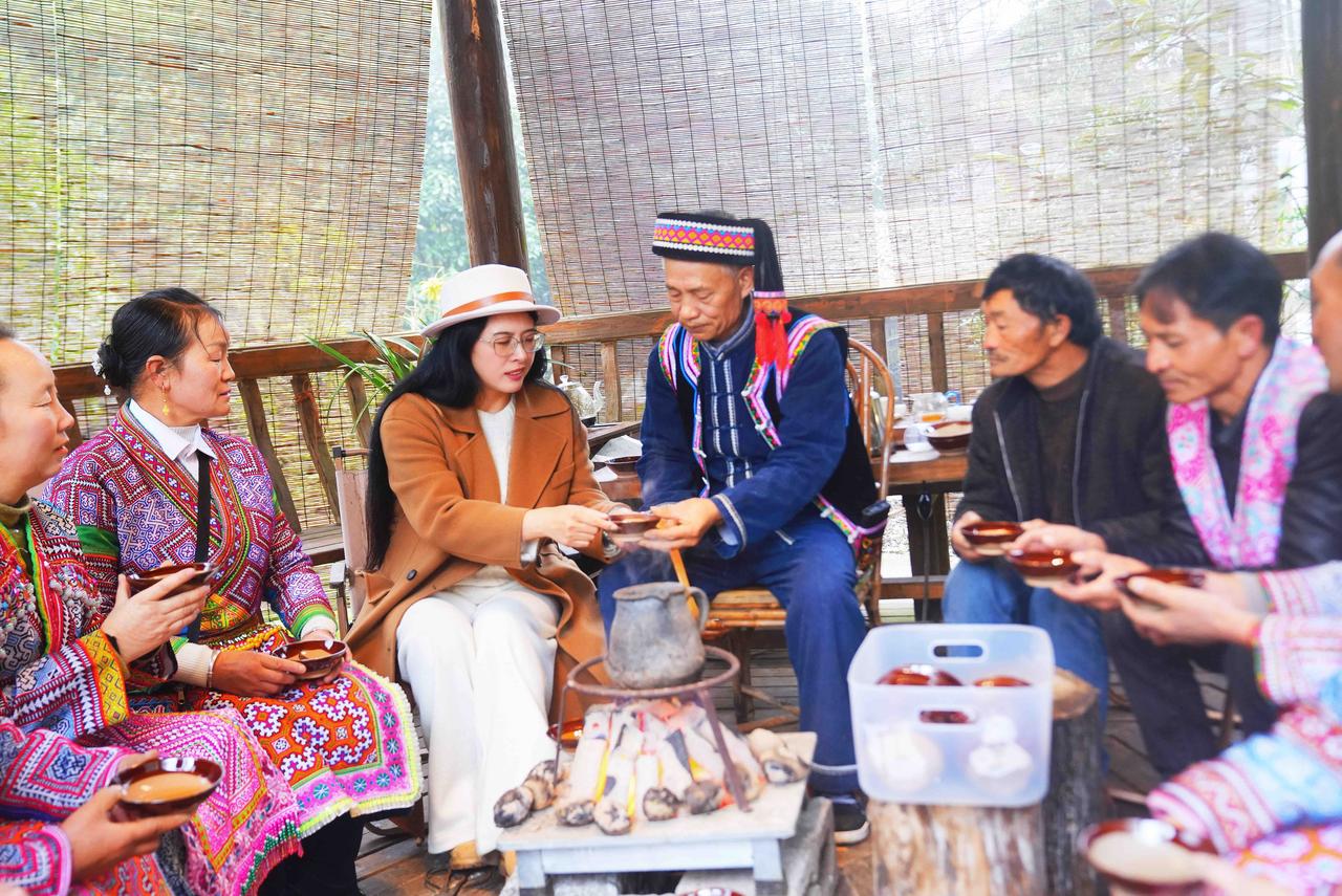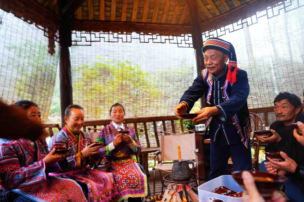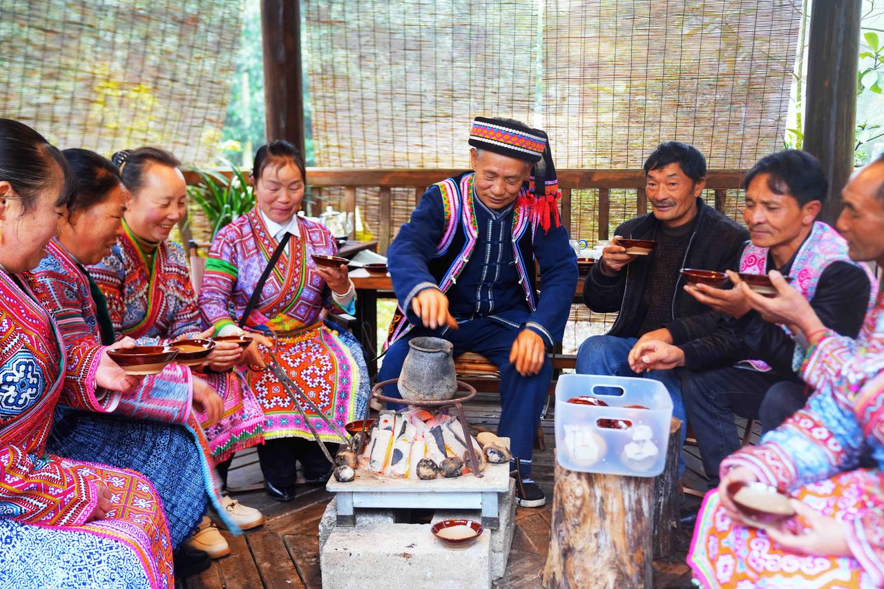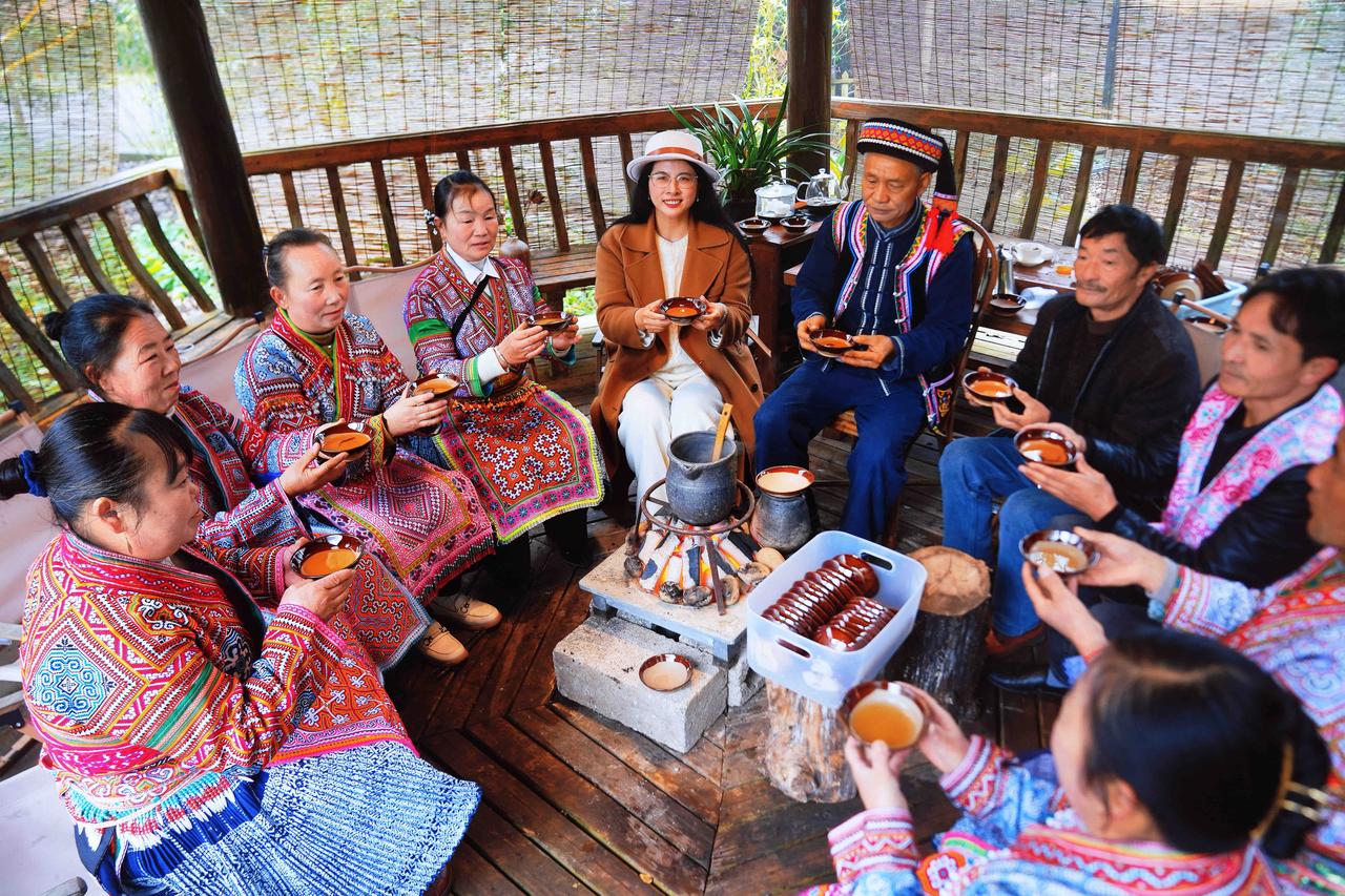 国家地理没写全的贵州:黔西南普安,围炉古茶树下,听见大山的呼吸 黔西南的冬,火塘里的炭火正红,我盘腿坐在贵州普安县青山镇哈马村的木楼阁里,手中粗陶茶碗的温度,恰好温暖着掌心。 火塘边,除了那只咕嘟作响的铁茶壶,还散落着几个圆滚滚的土豆,它们在炭灰的包裹下,正悄悄酝酿着山野的甜香。 “这是我们四球古茶树的春天。”苗族阿叔掀开茶罐的瞬间,一股清冽的香气扑鼻而来,像是将整座茶山的晨雾、露水和初阳都封存在了这方寸之间。 这是世界上仅存于黔西南喀斯特地貌的四球古茶树,它们的根系深扎岩缝,树龄已逾千年。粗陶罐放在炭火上烧烤,茶叶的清香,清新中带着山林特有的空灵,像春雨后的竹林,又似晨雾中的野花。炭火的热力将茶叶最原始的芬芳逼出,那是任何精致茶罐都无法复制的、活着的香气。 回到火塘边,土豆已烤得外皮焦脆。掰开的瞬间,白色热气裹着质朴的甜香,与手中茶汤的蜜韵交织在一起。 芦笙在这时响起。不是表演,而是生活的自然流淌。几位苗族阿叔和阿姨,吹着芦笙,踏着独特的步伐,跳起欢快的芦笙舞。 离开哈马村的清晨,薄雾正从古茶树林间升起。我回头望去,木楼炊烟与山雾缠绵不分。这个下午围炉所经历的,不仅是茶的滋味,更是一种完整的生存美学,炭火既能煮茶也能烤熟温饱,陶罐炒制的是生计也是文化,芦笙吹奏的是欢乐也是记忆。 而那些屹立千年的四球古茶树,依然在云端之上,等待着下一个春天,等待又将有人围坐火塘,在茶香与土豆香中,听见山野最古老的呼吸。