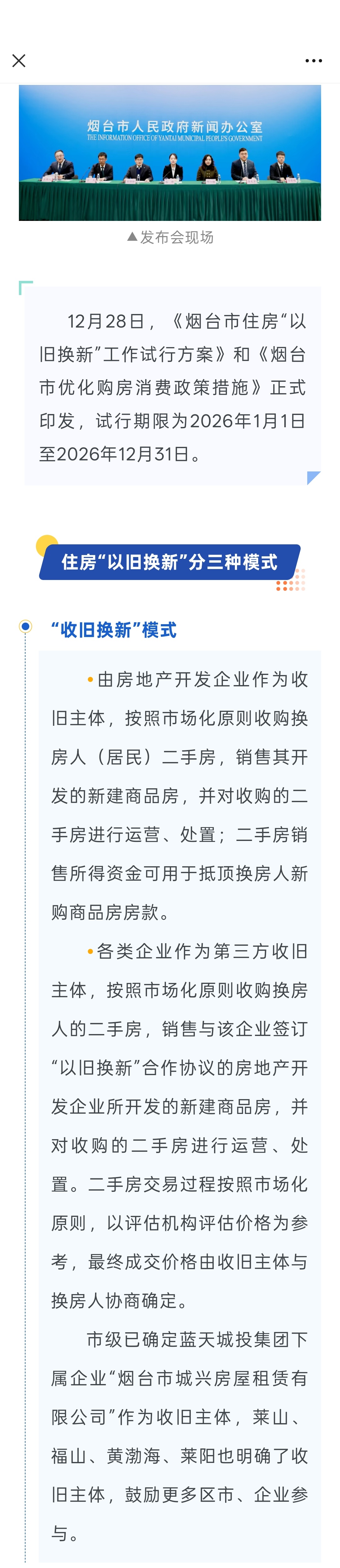 烟台住房“以旧换新”方案正式发布,明年起试行!