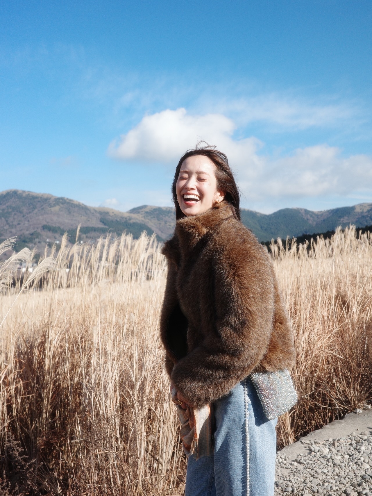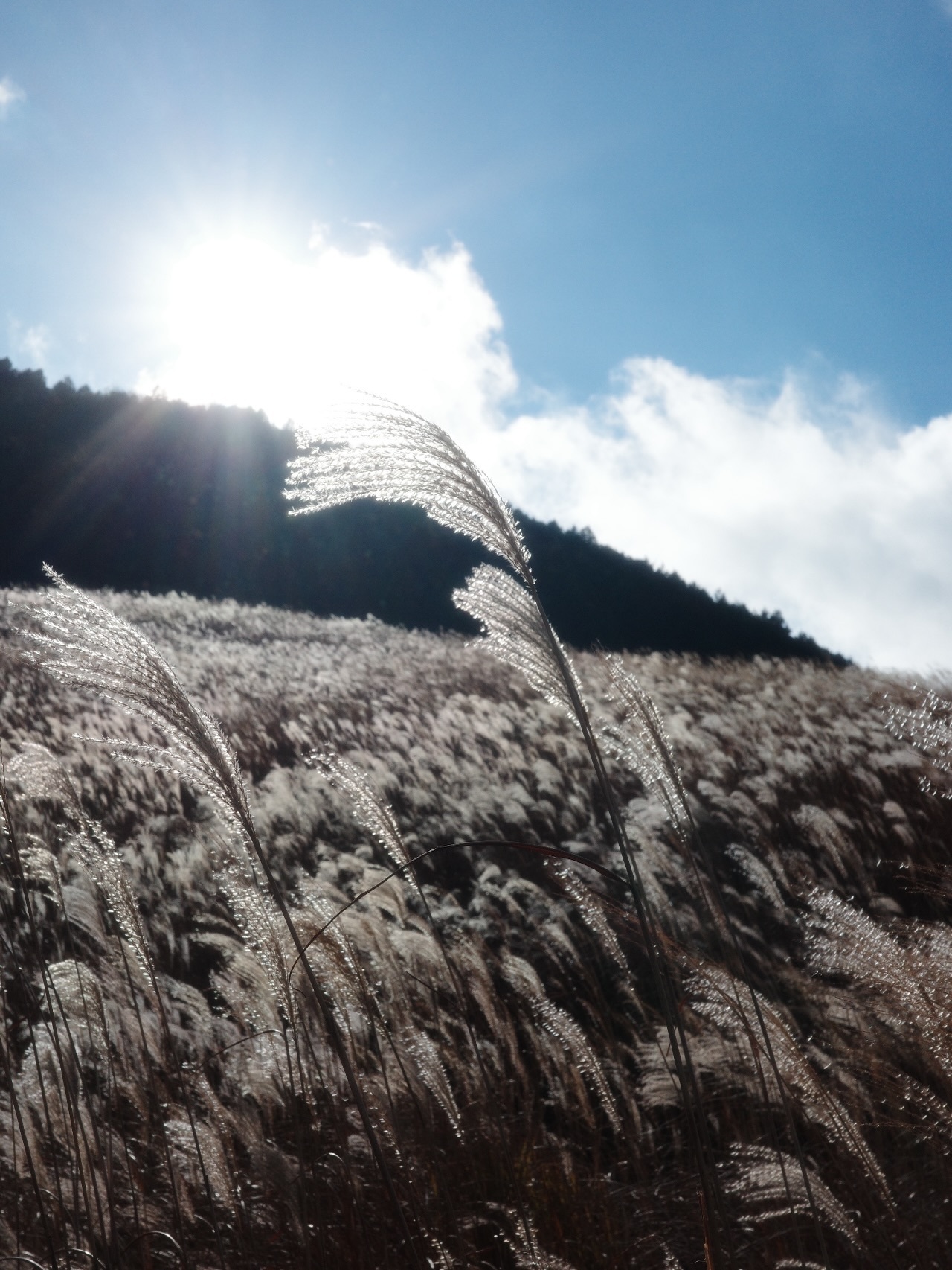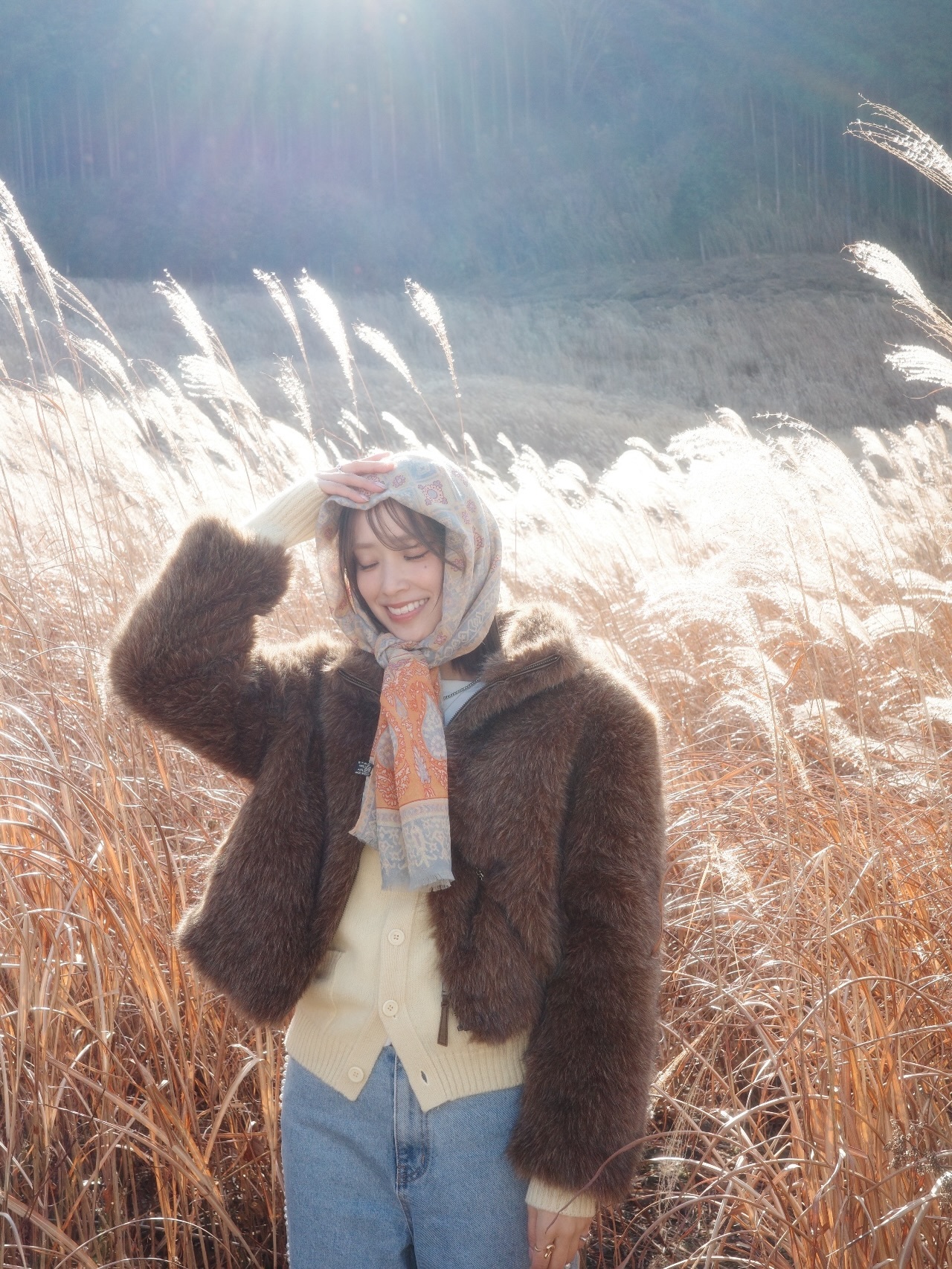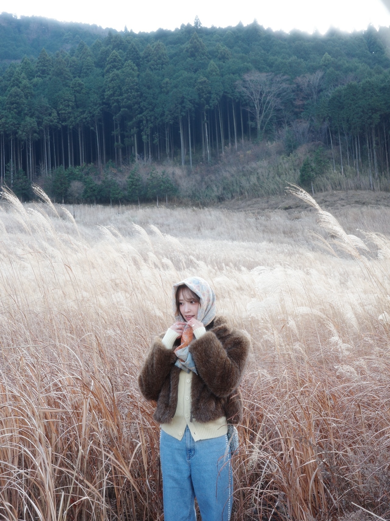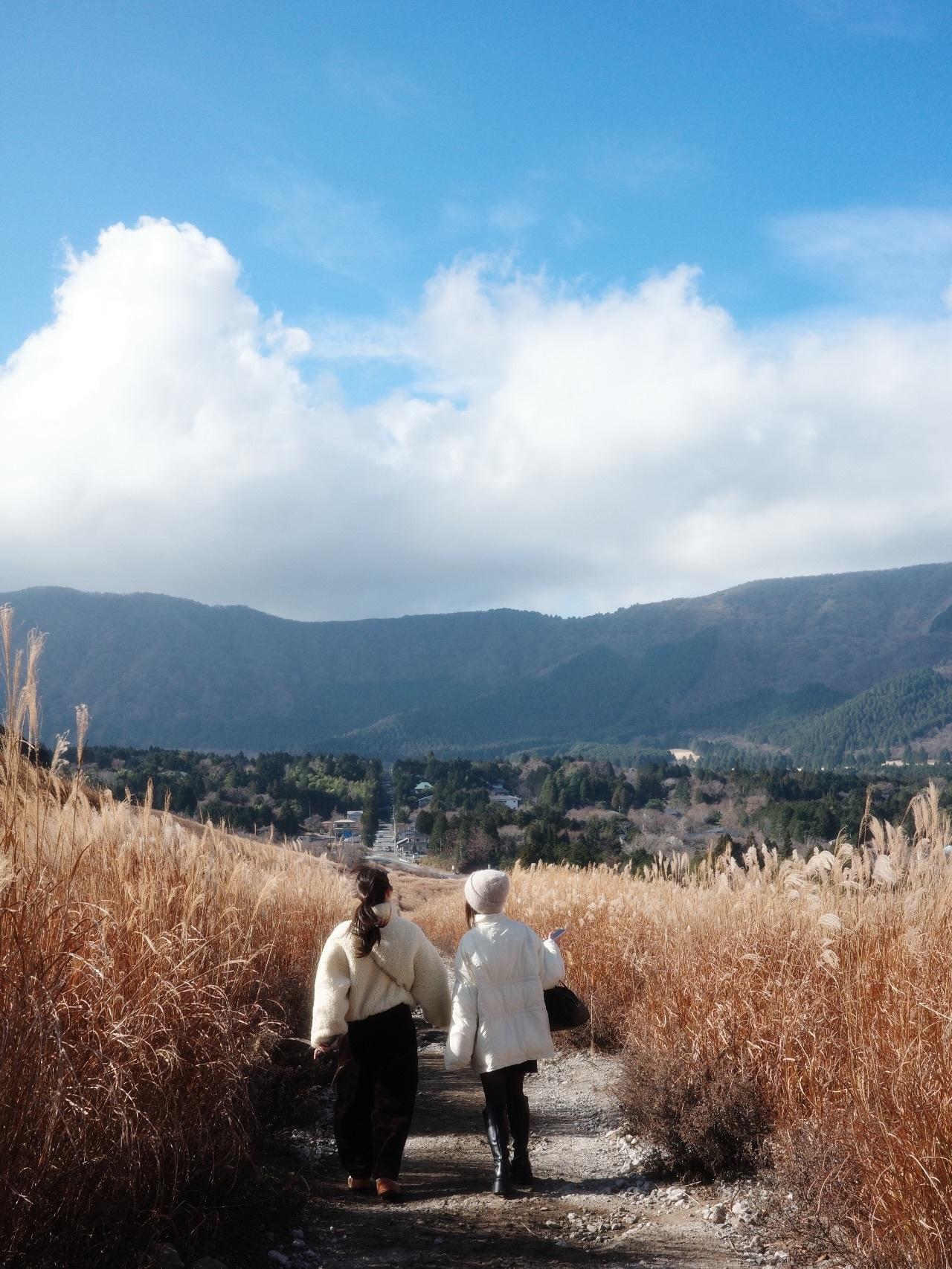 佐々木久美🦒「箱根たび🥚🖤風強過ぎてススキと一緒になびきました前髪オディ