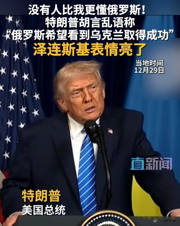 特朗普:“俄罗斯会帮忙的,俄罗斯希望乌克兰取得胜利……。” 很难想象,这是在特朗普与泽连斯基会晤时所发表的讲话。醉翁之意不在酒,而在于,让泽连斯基赶快签署协议。 泽连斯基可不傻,领土问题没有讨价还价的余地,听到上面特朗普的讲话,恐怕他简直不敢相信自己的耳朵,普京希望乌克兰好,希望乌克兰取得胜利?这让泽连斯基非常的纳闷,特朗普神经是不是发生了问题? 估计此时此刻的泽连斯基非常想说三个字:别逗了!
