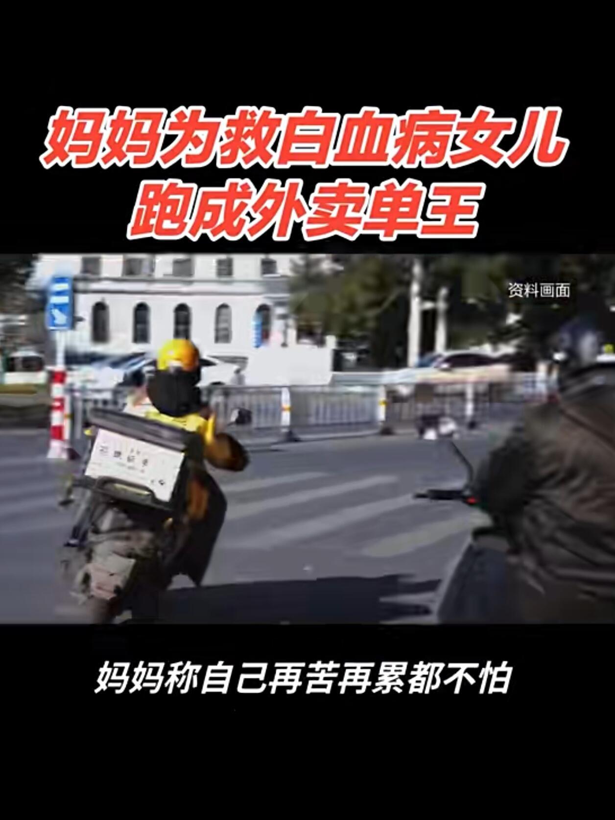 说真的,每次看到这种新闻,心里都堵得慌。一个90后妈妈,女儿才4岁,就得了急性淋巴细胞白血病。这病名听着都吓人,更别说治起来要花多少钱。家里肯定被掏空了,但这位妈妈,真是一声没吭,自己扛下了所有。 怎么扛?送外卖。 这活有多累,干过的人都知道。风吹日晒,抢时间,跑上跑下。可她呢,天不亮就出门,半夜才回家,一天干超过15个钟头。不管是夏天晒脱皮,还是冬天冷风像刀子,她都骑着小电驴在街上冲。为啥?就为了多送一单,多挣几块钱。 她拼到什么程度?成了那片的外卖单王。别人是熬日子,她是拿命在跑。每一份外卖,她都仔细打包,生怕洒了,准时送到。这不是敬业,这是为了女儿,每一分钱都不敢丢。 你问她这么拼值不值?她眼睛亮亮的,说只要能多陪女儿一会儿,看着她好起来,再苦都不怕。这话听着,又心酸又佩服。母爱这东西,平时不显山不露水,真到难处,能硬成一块铁。 咱们平常总抱怨生活累,压力大,看看她,真的没资格说什么。她让我们看到,人到底能有多韧,一个妈为了孩子,能迸发出多大的力量。 现在网上都在传她的事,很多人给她加油。说真的,这种时候,一句“挺住”,一句“祝福”,可能对她都是个安慰。希望她女儿能闯过这一关,希望这妈妈也能有缓口气的时候。 生活有时候是真残酷,但人也真能扛。她的故事,不是什么遥远的英雄传说,就是一个普通妈妈,在绝境里做的,最不普通的事。点赞容易,但真正的关注和帮助更难能可贵。 希望咱们的热度,能真的给她带来点实际的温暖。