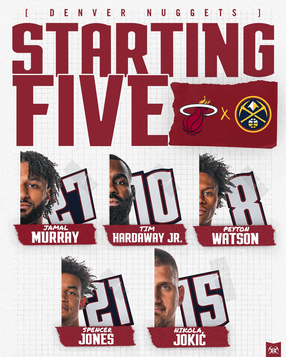 掘金首发:默里、小哈达威、沃特森、斯宾塞、约基奇