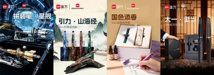 在逗万拼装笔成功破局的基础上,逗万Dareworks持续拓宽创新边界,相继推出逗万香薰笔与逗万变装笔两大创新笔系列,构建起多元立体的创新笔产品矩阵。