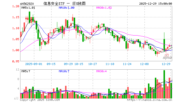 12月29日,信息安全ETF(562920)跌0.10%,成交额648.60万元。当日份额减少100.00万份,最新份额为6906.90万份,近20个交易日份额增加500.00万份。最新资产净值计算值为7051.25万元。