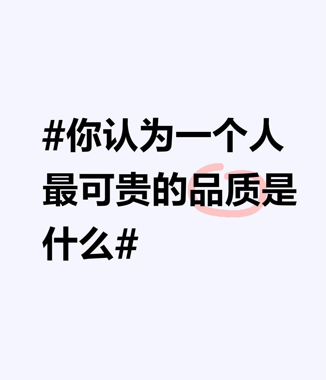 我觉得一个人最可贵的品质是善良且有原则。 之前坐公交,看到一位大妈忘带钱,司机正准备赶她下车,这时一个年轻人主动帮大妈付了钱,还安慰大妈别着急。这就是善良,能在别人有困难时伸出援手。 但善良不是无底线的。我朋友之前好心借钱给同事,同事却一直不还,还觉得理所当然。朋友后来不再无原则地借,这就是有原则。善良有了原则,就不会被人利用,既能温暖他人,又能保护自己,这样的品质在生活中太珍贵啦。