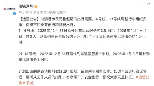 港铁深圳发布运营公告