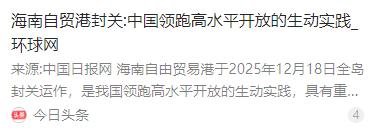 美日现在对中国不是“强硬”,是慌了!因为他们已经看清一件事——海南一旦封关跑顺,中国就不再是那个能被随手经济拿捏的对象,而是正在变成一个让制裁失效、让封锁走样的超级节点。 麻烦看官老爷们右上角点击一下“关注”,既方便您进行讨论和分享,又能给您带来更多优质的内容,感谢您的支持! 最近美日对华的态度有点意思,明显不是过去那种板着脸的强硬,而是透着一股子慌乱。为啥?因为他们突然看清了一件事 —— 海南正在干的那件大事,一旦跑顺了,中国可能就再也不是那个能被随便用经济手段拿捏的国家了。 这事得从海南自贸港的 “封关运作” 说起。简单讲,封关不是把海南关起来,而是将海南岛全岛建成海关监管特殊区域,实施 “一线放开、二线管住、岛内自由” 的政策制度。 在海南,货物、资金、数据这些要素的流动会享受到国际上最高水平的开放政策,“零关税” 商品范围大幅扩大,增值税等按政策减免或取消,但人员进出海南无需额外通行证件,仅货物进出海南与内地需按规定监管。 这有点像把香港、新加坡的自由港经验,在一个比它们大得多的岛屿上做一个升级版实验。 美日慌的,正是这个 “升级版” 背后的能量。过去几十年,西方特别是美国,手里最趁手的工具就是经济制裁和封锁。 通过控制国际金融结算系统、关键技术和全球贸易通道,他们能轻易对不听话的国家施压。可海南这套玩法一旦成了,等于在中国经济体系里植入了一个高度开放的 “超级节点”。这个节点既能深度对接国际市场,又能依托内地庞大的产业链和市场作为缓冲。 比如说金融。海南已通过多功能自由贸易账户(EF 账户)实现跨境资金流动便利化,封关后将进一步完善跨境资金流动管理制度,发展离岸金融相关业务。 这意味着,就算外部试图用 SWIFT 系统来卡脖子,中国也可能通过海南这个窗口,拓展更多元的跨境支付和融资渠道。 再比如技术封锁,海南已启动境外认证改革试点,成为国际先进技术、数据合规进入中国的 “压力测试区”,通过特殊政策吸引全球研发资源,助力突破部分领域卡脖子环节。 这就不难理解美日为啥坐不住了。他们发现,自己工具箱里那些用了好多年的老家伙,可能快要撬不动中国这扇门了。以往一制裁就指望对方经济承压、社会不稳的局面,在中国身上越来越难出现。 中国不光是在 “防”,更是在用海南这样的点,主动 “建” 一套新的连接规则。这预示着全球贸易和金融的规则可能正在被悄悄重塑,而美日担心自己会被排除在外,或者失去主导权。 更深一层看,海南试验的成功,象征意义巨大。它证明了中国有能力在维持总体经济安全的前提下,打造出世界级的开放高地。 这对外传递的信号是:中国开放的大门只会越开越大,但开放的方式和节奏,将由我们自己主导。那种 “你想来就来、想走就走、想卡就卡” 的旧时代玩法,行不通了。 当然,海南封关是个庞大复杂的工程,已于 2025 年 12 月 18 日正式启动,完全实现功能完备仍需长期推进。 但它的方向和潜力已经足够清晰。美日的慌乱,本质上是对一种趋势的提前反应 —— 他们意识到,用旧地图已经找不到中国这个 “新大陆” 了。中国不再仅仅是被动接受全球规则,而是开始成为新规则的参与制定者,甚至在某些局部成为规则的提供者。 这种转变带来的冲击是全方位的。在贸易上,封关后海南 “零关税” 商品税目将扩至 6600 多个,覆盖 74% 的商品,更多商品可通过海南实现更自由、更低成本的双向流动。 在科技上,海南已实现光伏产品 “一次检测、多国认证”,正成为国际科技合作与竞争的新前沿。 在金融上,它已落地 144 只 QFLP 基金、15 家 QDLP 基金管理企业,正孕育出人民币国际化的重要新支点。 所有这些,都在一点点削弱传统霸权手段的威力。 所以,现在美日对中国的种种动作,无论是科技围堵还是军事搅局,在强硬表象下,都带着点 “赶紧拦一拦、试试还有没有用” 的焦虑感。他们怕的不是今天的中国,而是海南这样的棋落下之后,明天那个更加联通世界、却又更难以制约的中国。 说到底,大国博弈就像下棋,最高明的手不是见招拆招,而是自己开辟一个新局。海南封关,就是这样一步开辟新局的关键棋。 它让中国在复杂国际环境中的腾挪空间变大了,也让那些习惯了用旧剧本施压的国家,不得不面对一个全新的、并且正在快速成形的现实。这盘棋,才刚刚下到有意思的地方。