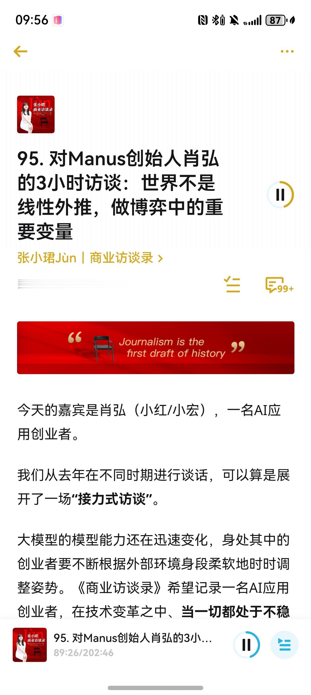 后面卖掉“壹伴”,重新创业做浏览器AI插件,做过几个款小软件和插件,而如今爆火的Manus也是今年初才上线的,半年多时间做出估值几十亿美元的产品。Meta之所以收购Manus,据说扎克伯格是其深度用户。 刚好前不久听了肖宏一期三个多小时的播客,当时Manus还没上线,感兴趣的可以听听,这里有关于他的成长和创业经历,是一名90后。