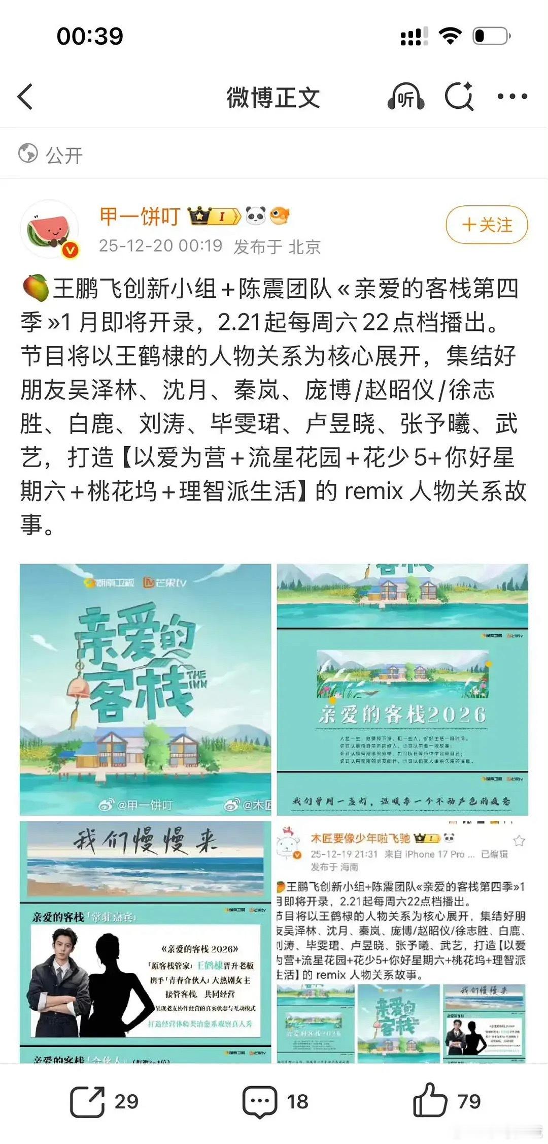 王鹤棣《亲爱的客栈》 目前在海南开录先导片这档综艺是以王鹤棣的人物关系为核心展开