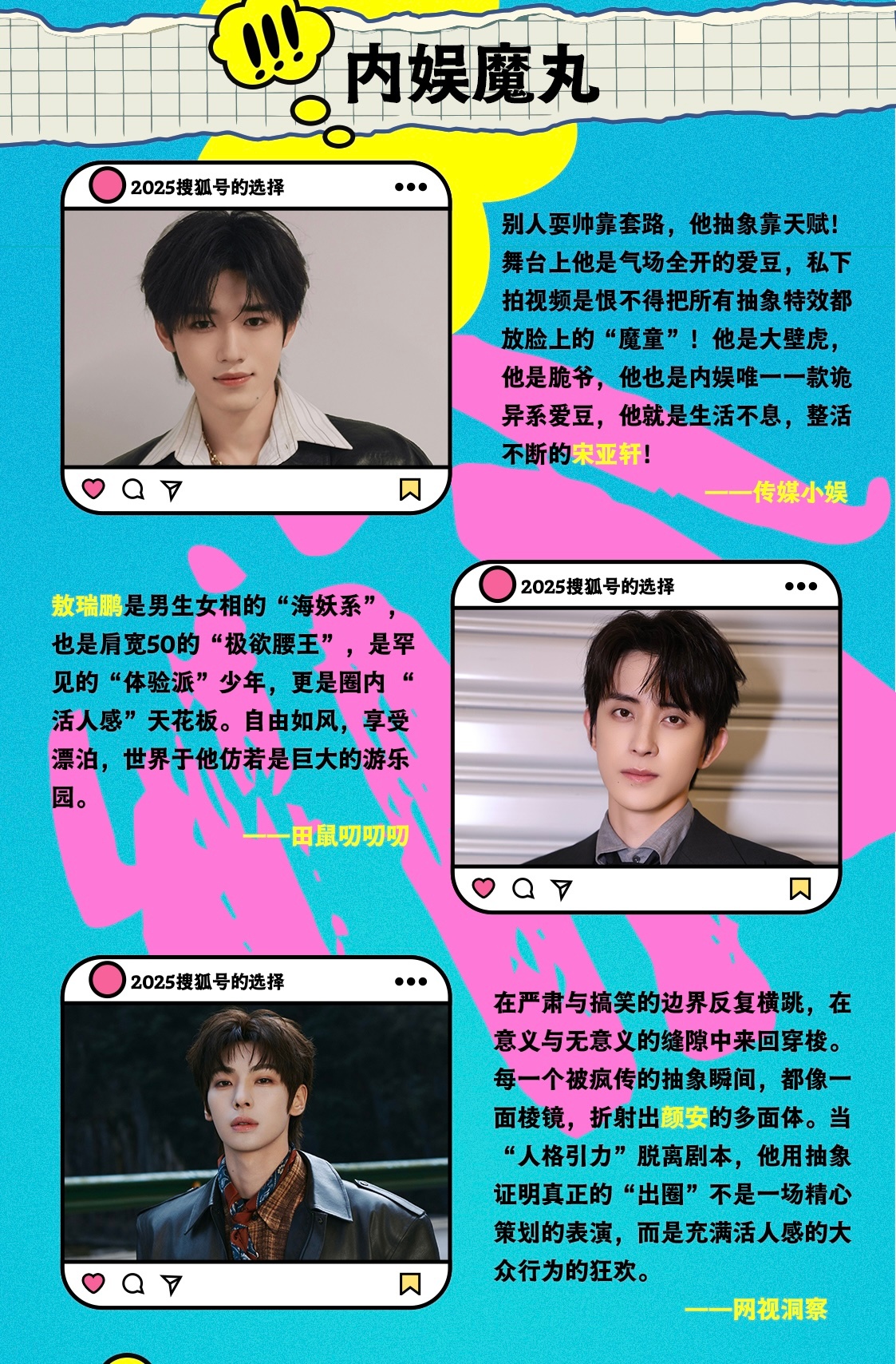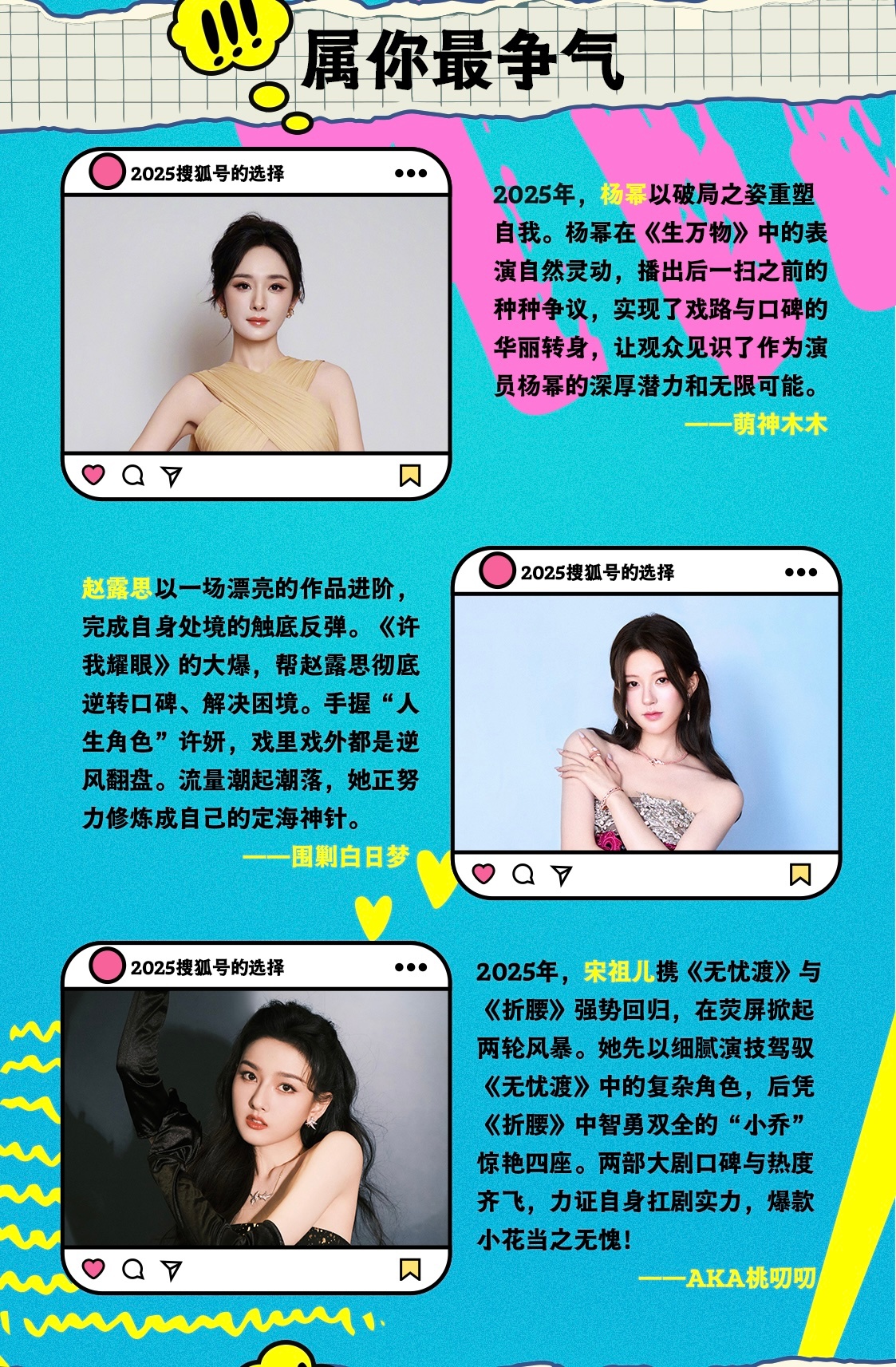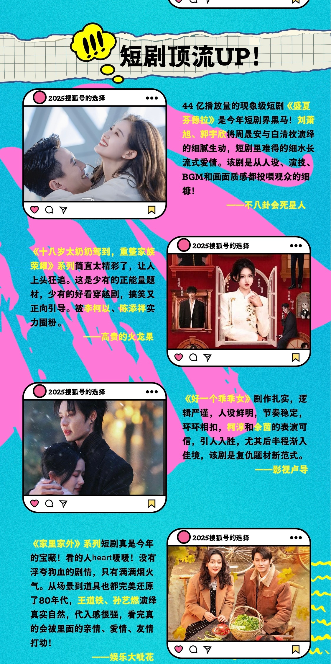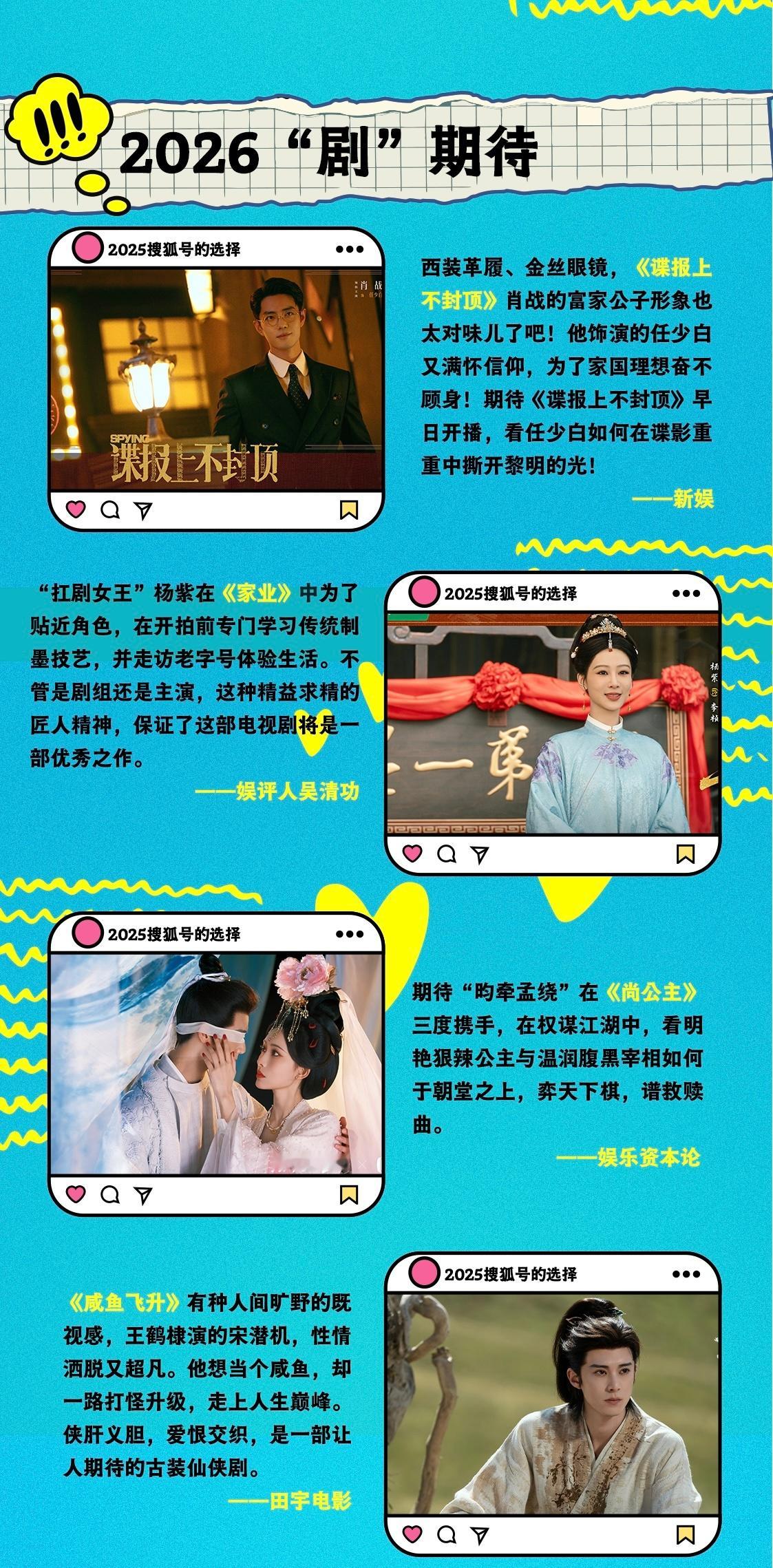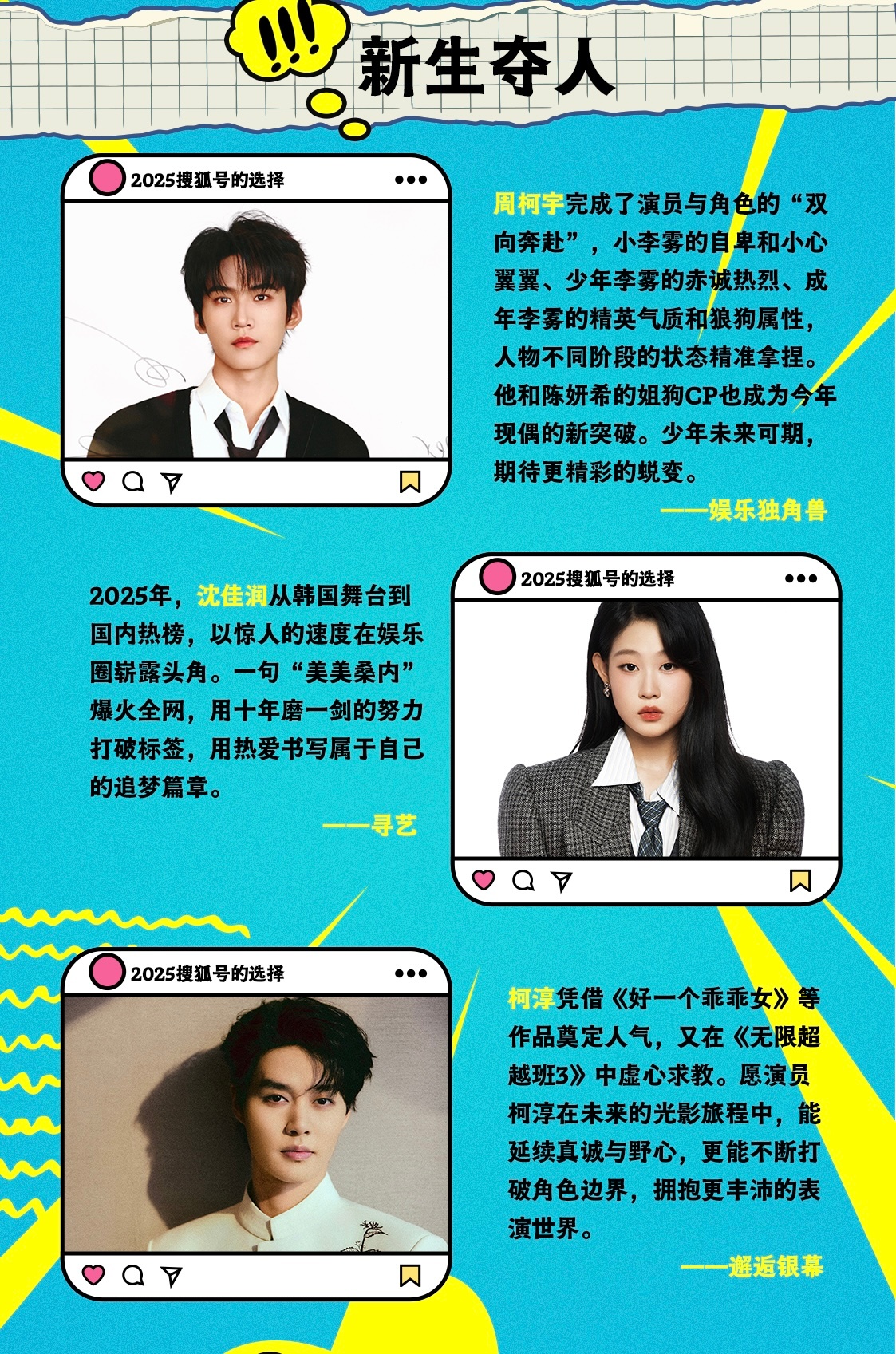 2025搜狐号选择🈶内娱有哪些新风向?搜狐娱乐特邀70+搜狐号文娱领域自媒体参与调查投票,一起围观吧⬇️声量王者TOP3易烊千玺、肖战、刘宇宁2025你最争气TOP3杨幂、赵露思、宋祖儿新生夺人TOP3周柯宇、沈佳润、柯淳内娱魔丸TOP3宋亚轩、敖瑞鹏、颜安2026剧期待TOP4《谍报上不封顶》肖战&周雨彤、《家业》杨紫&韩东君、《尚公主》孟子义&李昀锐、《咸鱼飞升》王鹤棣&李沁2025短剧顶流TOP4《盛夏芬德拉》郭宇欣&刘萧旭、《十八岁太奶奶驾到,重整家族荣耀》李柯以& 陈添祥、《好一个乖乖女》柯淳&余茵、《家里家外》王道铁&孙艺燃