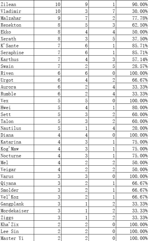 直播吧12月30日讯根据fandomwiki数据库的统计,截止目前Faker在正式比赛里所有上场的英雄数据统计,沙皇199场,总胜率高达70.85%!