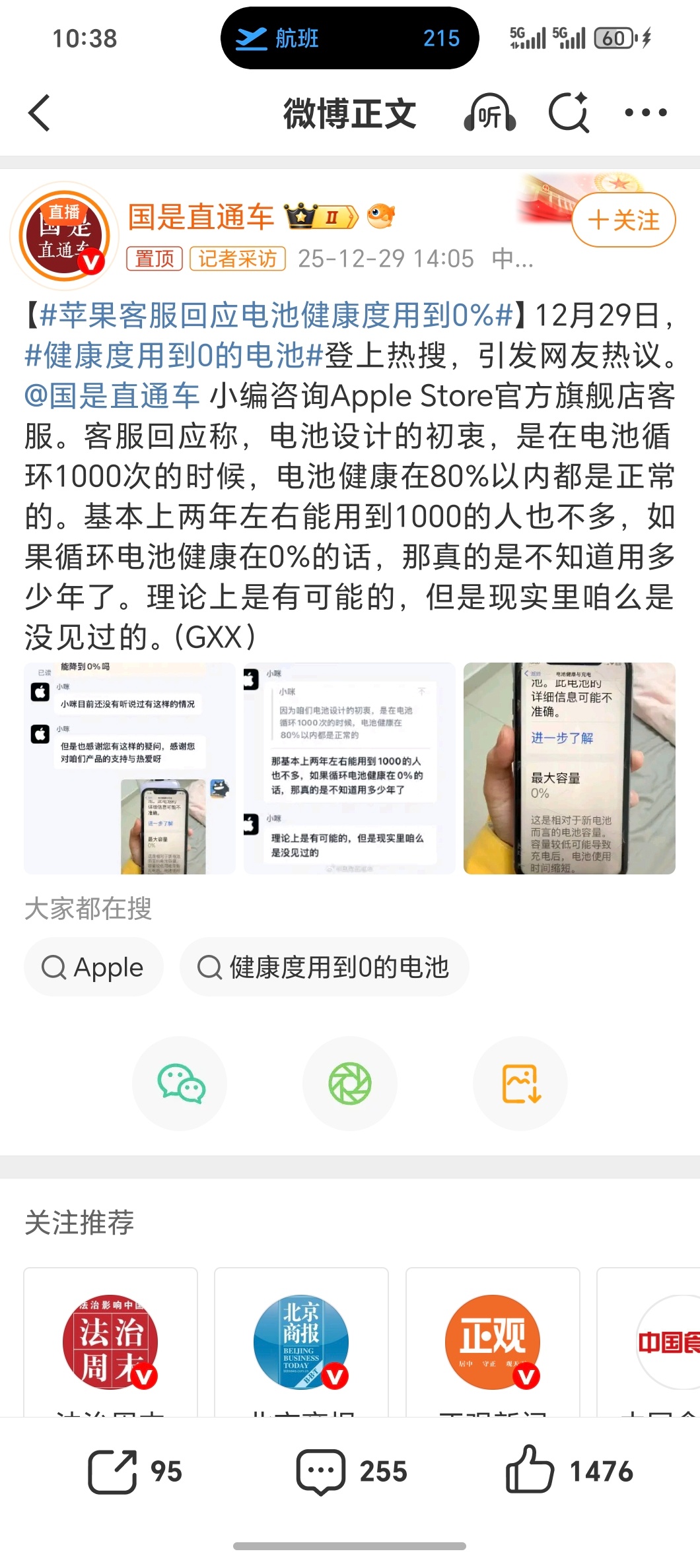 苹果客服回应电池健康度用到0%电池健康80%以下续航就明显不行了用到0%是怎么做到的那不得永远插着电源使用…如果用了很久随便换块第三方电池就好也花不了200块钱