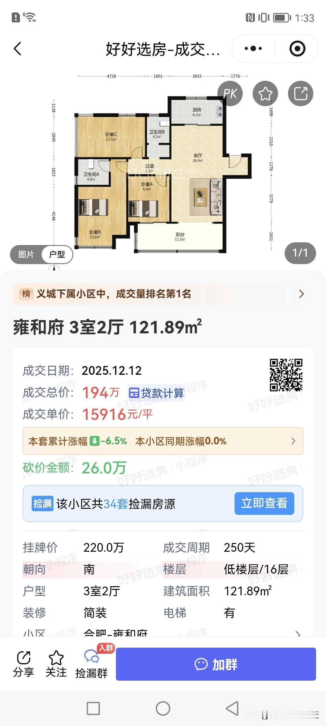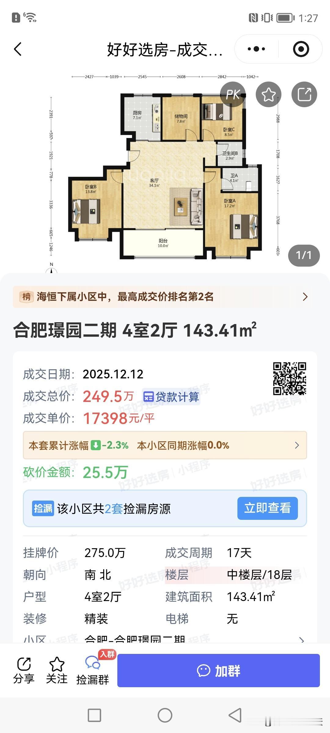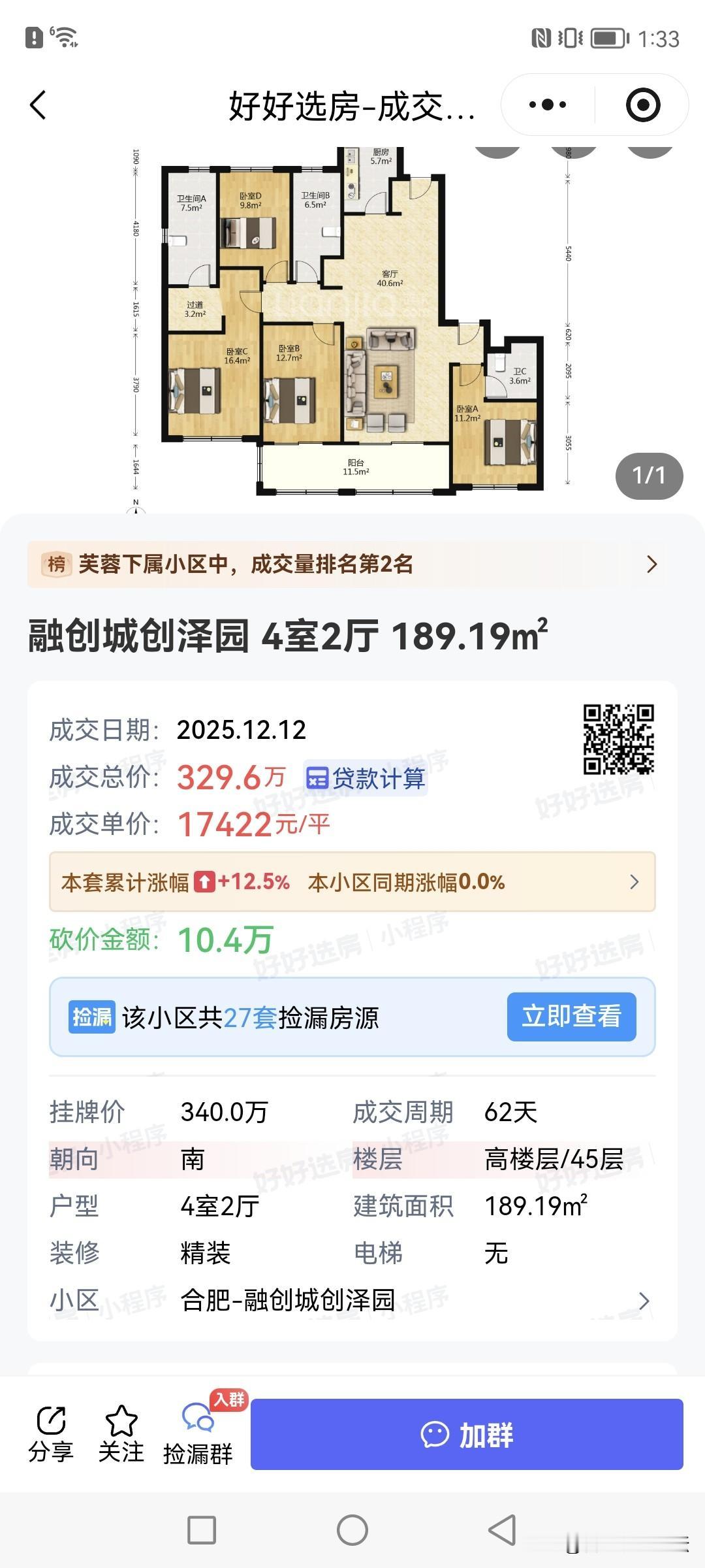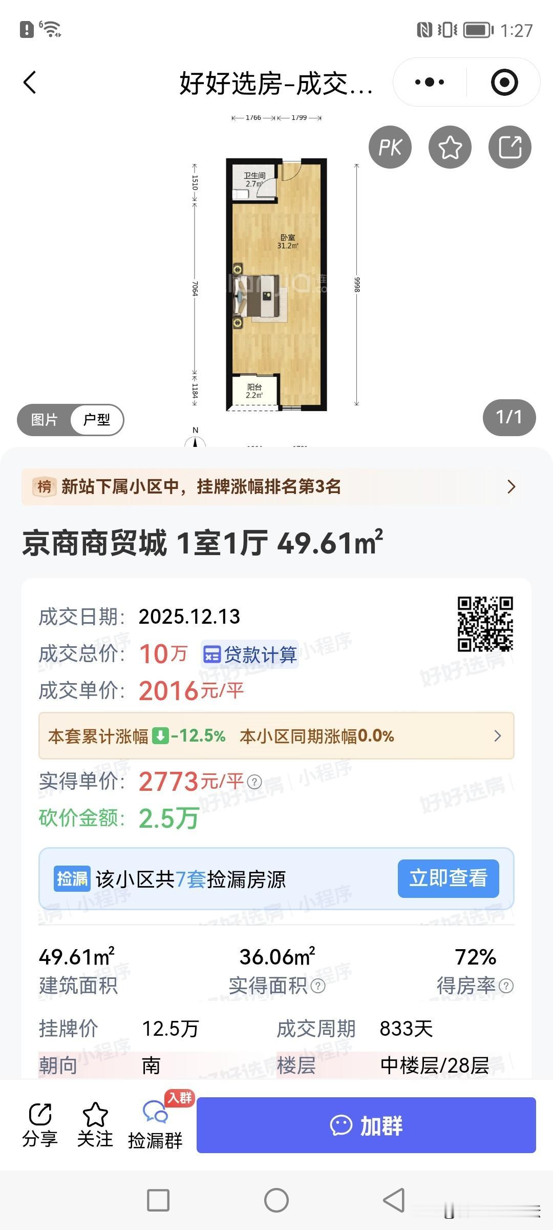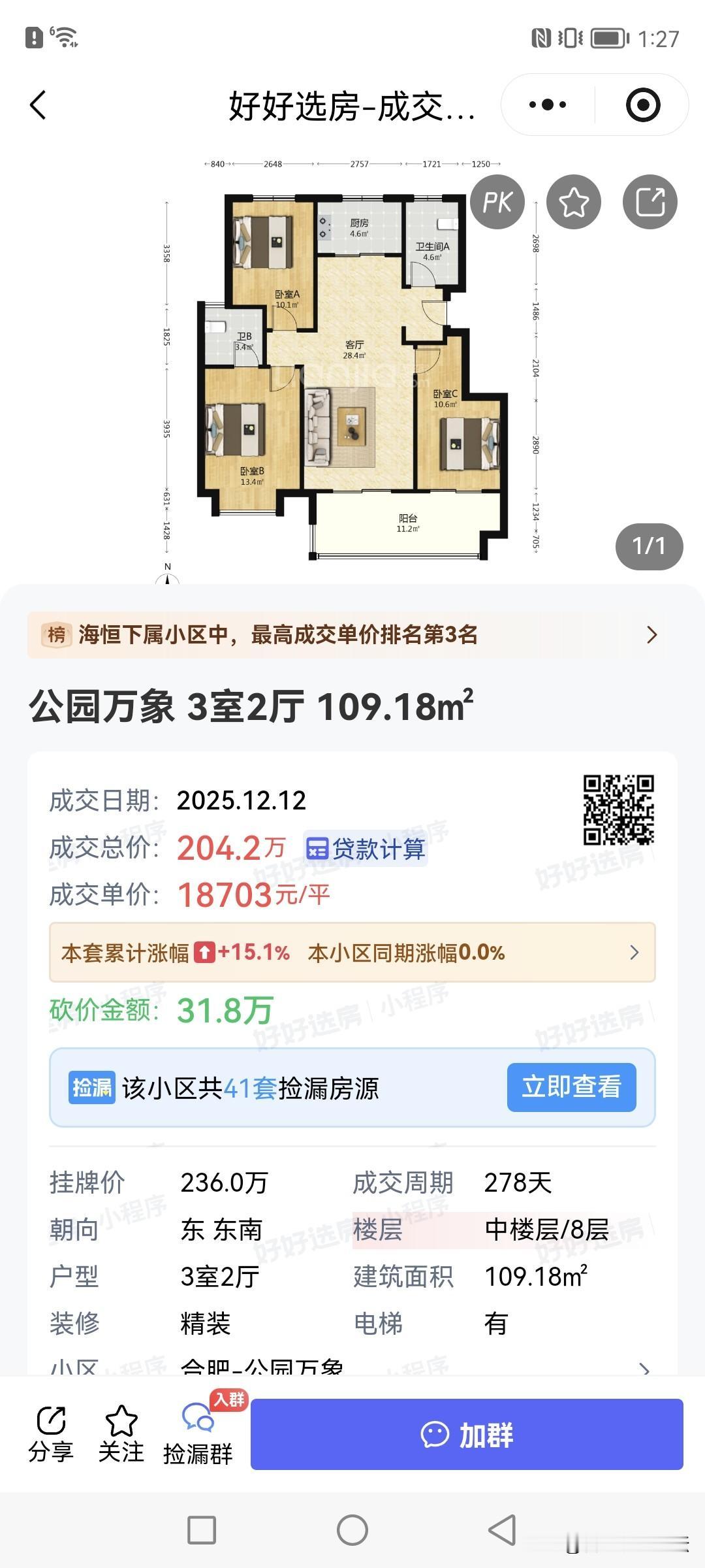 最近合肥一些热门小区二手房成交情况。京商商贸城现在10万块钱一套。公园万象的洋房