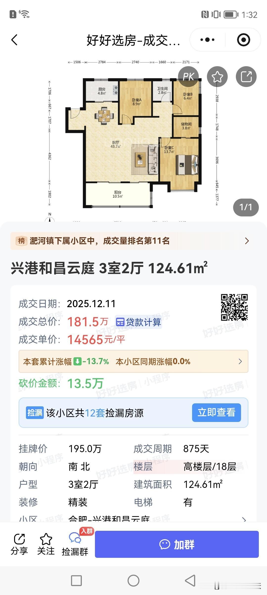 最近合肥一些热门小区二手房成交情况。京商商贸城现在10万块钱一套。公园万象的洋房单价一万八,淝河的次新小高层单价一万四。
