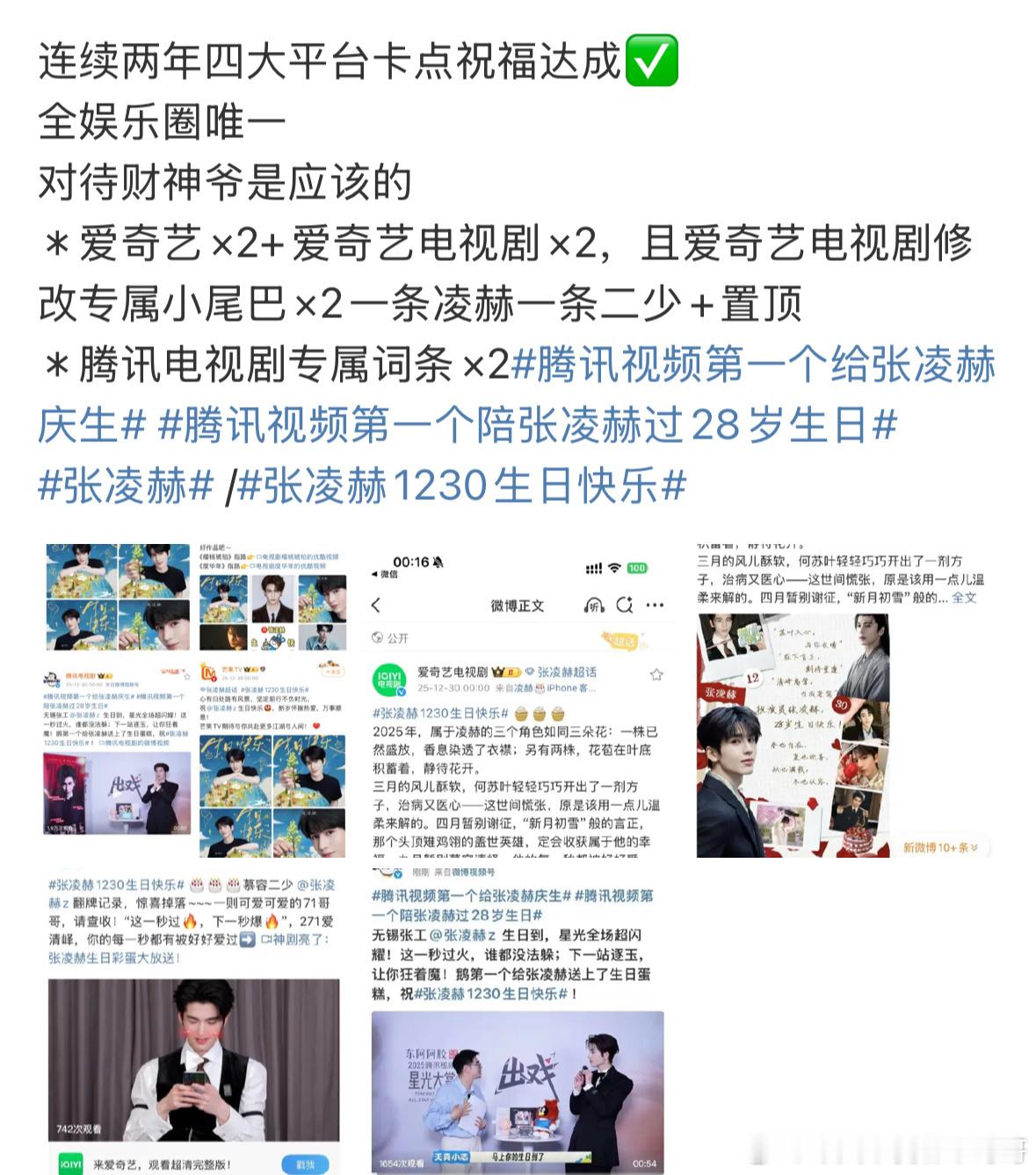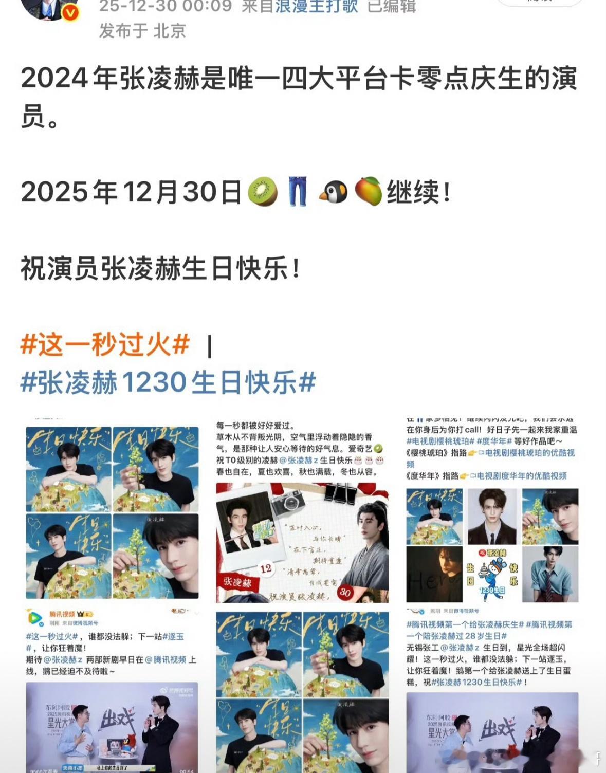张凌赫是内娱唯一一个🐧🥝👖🥭四大平台同时卡零点庆生的艺人,而且连续两年