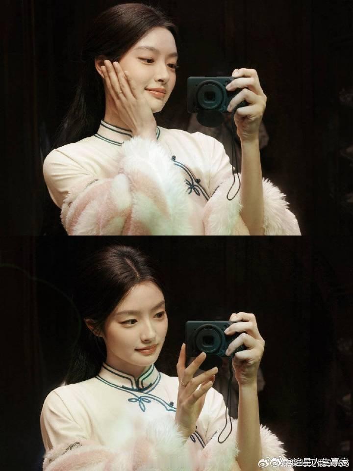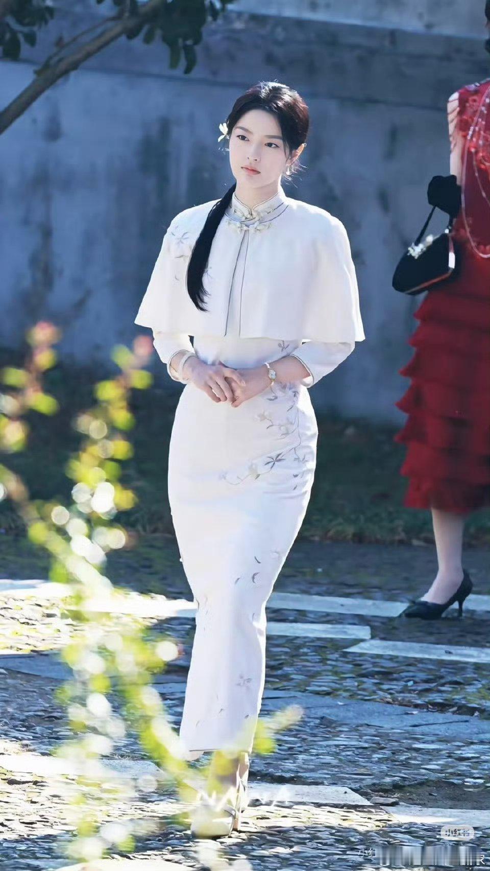 徐若晗今天玉簟秋路透,还蛮适合民国造型的 现代装手拿把掐