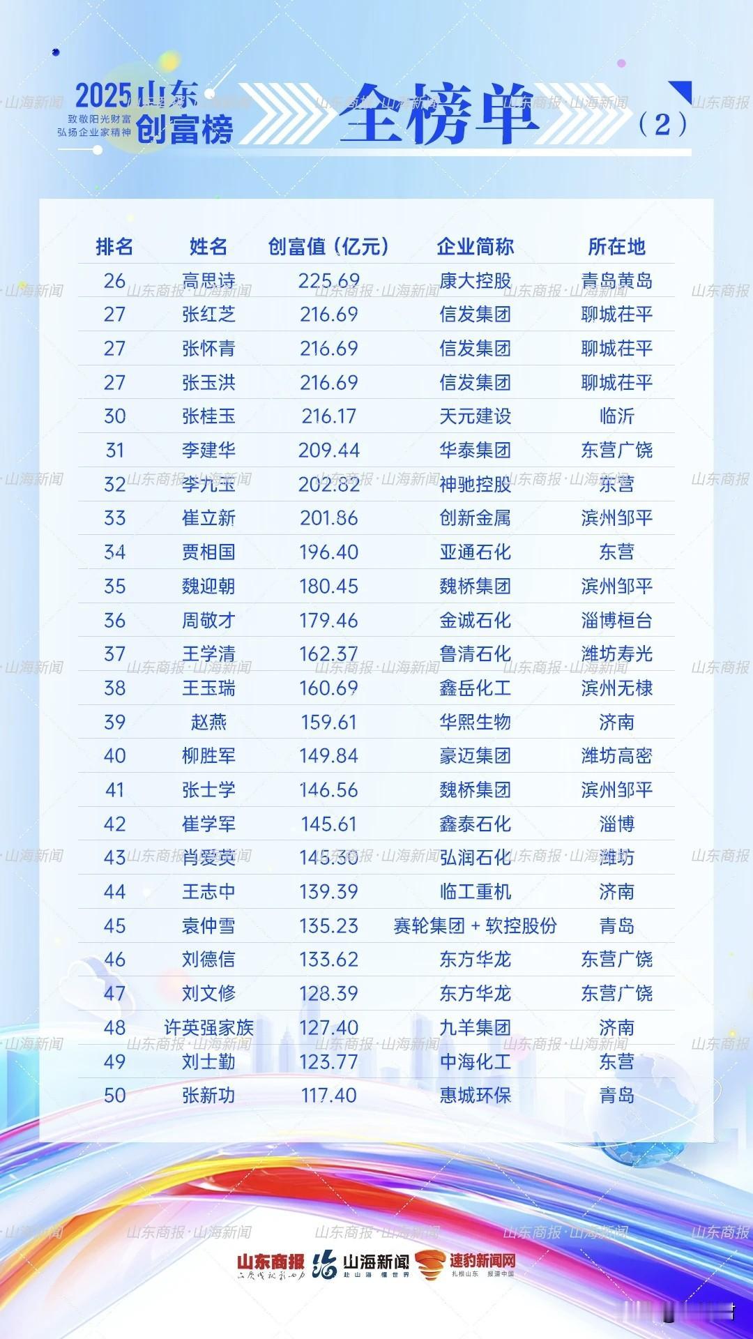 牛了,天元建设集团董事长以创富值216.17亿荣居2025年山东创富榜第30名,临沂第三名。 天元建设集团作为临沂第一家特级资质建筑企业,旗下公司三四十个,甚至还有海外公司,这点创富值应该是九牛一毛。 临沂排名第一的是临沂莒南的鑫海科技老板,第二是奥德集团老板,都是临沂响当当的大企业。 员工五险一金、过年奖金福利、工资正常发放应该不用愁了,老板身价上百亿,应该也不差这点钱,员工们有福了。 山东商报发布的这个榜单确实比较不错,有的员工还不知道自己的老板有多少钱,天天憨的贷款给老板打工呢。