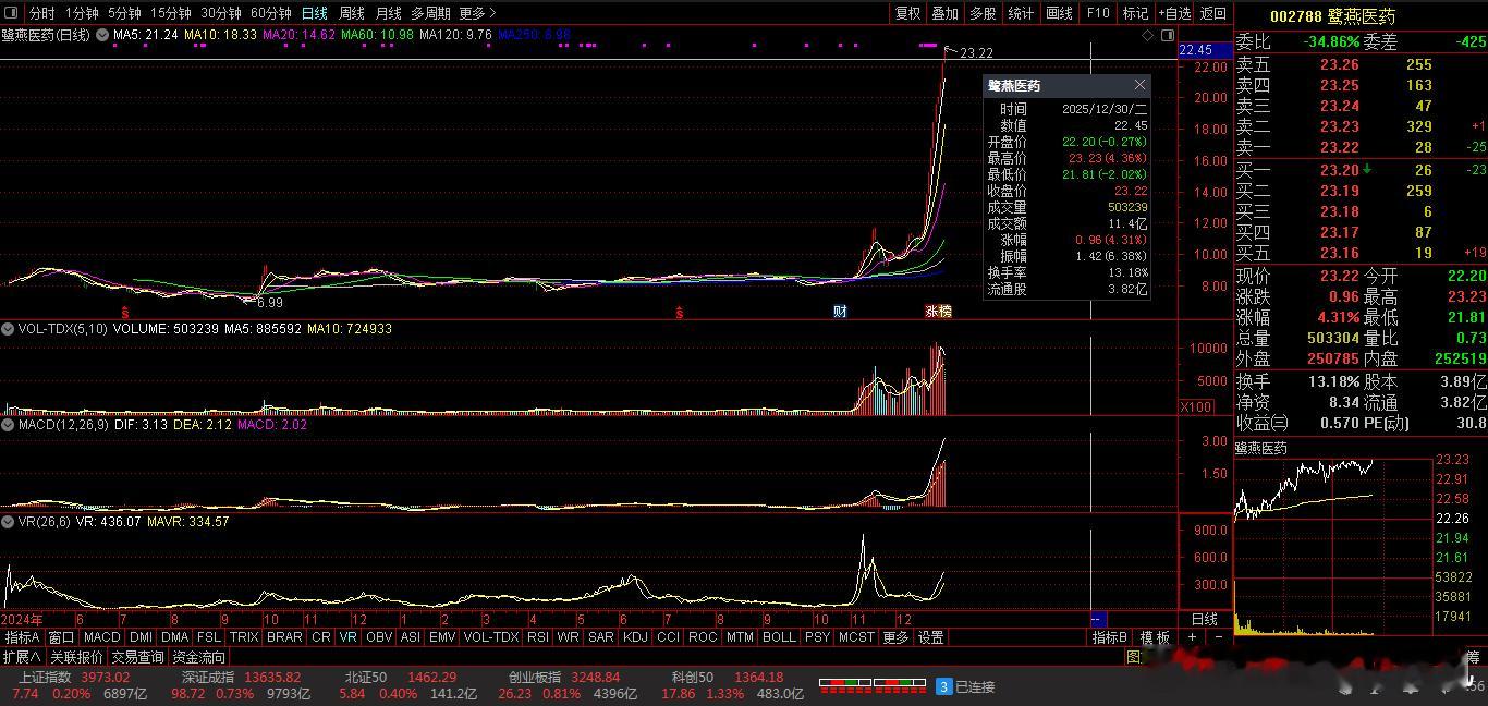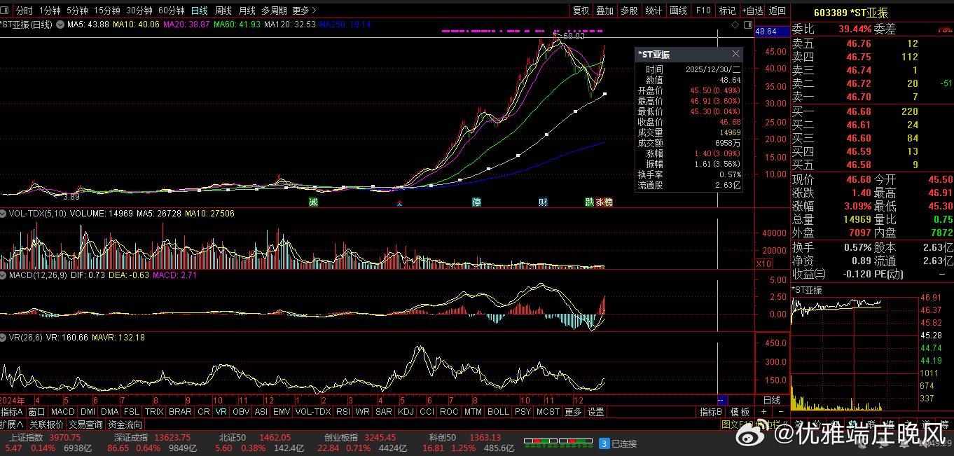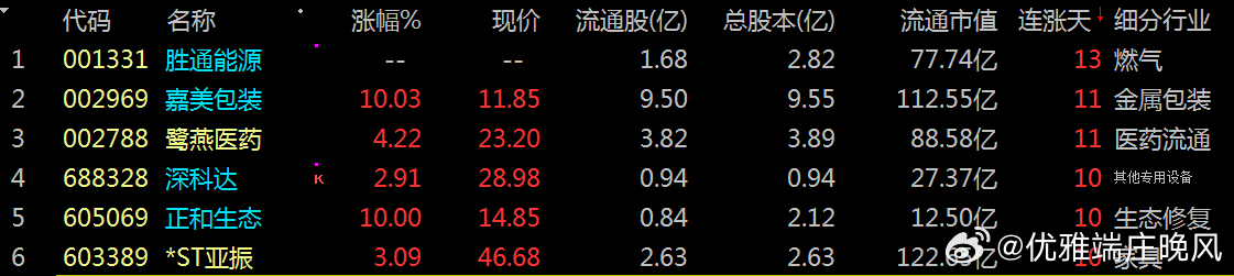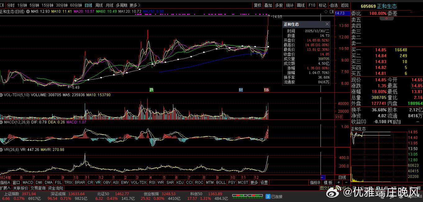 【财富晚茶】观赏六龙股票:今日高关注度:跨年龙头公司导语:作者系《网易号》优质财经领域创作者。曾经原创作者和知名网易号旅游领域创作者。大跨度行业等的写作,颇受网友喜爱。作品发表于2025.12.30.14:18 优雅端庄晚风。【内容概述】今日股市午盘收评:主题是:【财富晚茶】观赏六龙股票:今日高关注度:跨年龙头公司。主旋律:12.30主力资金:穷追猛打六龙股票:政策催生脉冲背景。【百思不解】连涨涨停板之后:这些热股还能不能涨?关键得看:资金和情绪是否持续。我帮你梳:理了核心逻辑和风险点。咱们和友友一起直接看朦胧的:六龙股票。一、视野午间:复盘连板股票1、胜通能源(001331)核心逻辑:市场最高标,10连板,实控人变更题材受资金持续追捧,成为情绪标杆。风险提示:已进入重点监控,需警惕开板分歧风险。2、嘉美包装(002969)核心逻辑:7连板,实控人变更题材实现五连板,成为核心跟风标的。风险提示:已新增重点监控,需关注后续断板姿势及资金承接力度。3、鹭燕医药(002788)核心逻辑:5连板,医药零售赛道受消费复苏预期支撑,成为医药板块的连板人气标的。风险提示:利润波动较大,市净率处于近十年74.81%分位值,距离中位估值还有23.59%下跌空间。4、深科达(002920)核心逻辑:13连涨,ESG评级为BBB(2025-06-30),表现较好。风险提示:需结合市场情绪及板块轮动综合判断。5、正和生态(000601)核心逻辑:10连涨,商业模式稳定,建议用绝对估值预估公司现值,业务较难准确预测,需保守检视当前估值水平。风险提示:若按当前市值回推,未来5年业绩复合增速需达34.6%才能撑起当前市值,市场预期可能过热。6、 *ST亚振(603312)核心逻辑:10连涨,ESG评级为C(2025-06-30),表现一般。风险提示:需结合公司基本面及市场情绪综合判断。二、惊心动魄:连板何去何从1、沪指市场与风险提示市场情绪:沪指微涨:录得9连阳。持续走强:分别是商业航天、人形机器人概念。独一无二:高涨停板:高度收缩。显示资金:追涨意愿仍显谨慎。2、风险提示分化明显:高位股与低位补涨股开始分化。明显需要:是否最后:一棒警惕筹码松动风险。信息警示:能帮你快速把握核心逻辑,投资时多留个心眼,注意风险控制。三、本创作者:网易优质作者投资投机迷茫之中:给予尽可能有帮助:资本市场风险自负。(优雅端庄晚风《网易号》优质财经领域创作者和原创作者; 违者必究)
