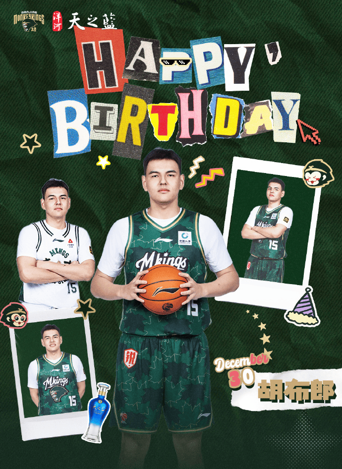 虎扑12月30日讯南京队官方社媒晒胡布郎生日海报。