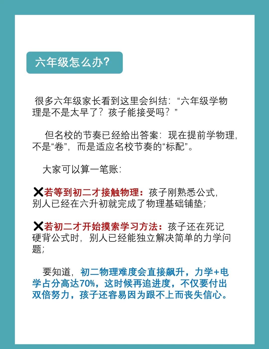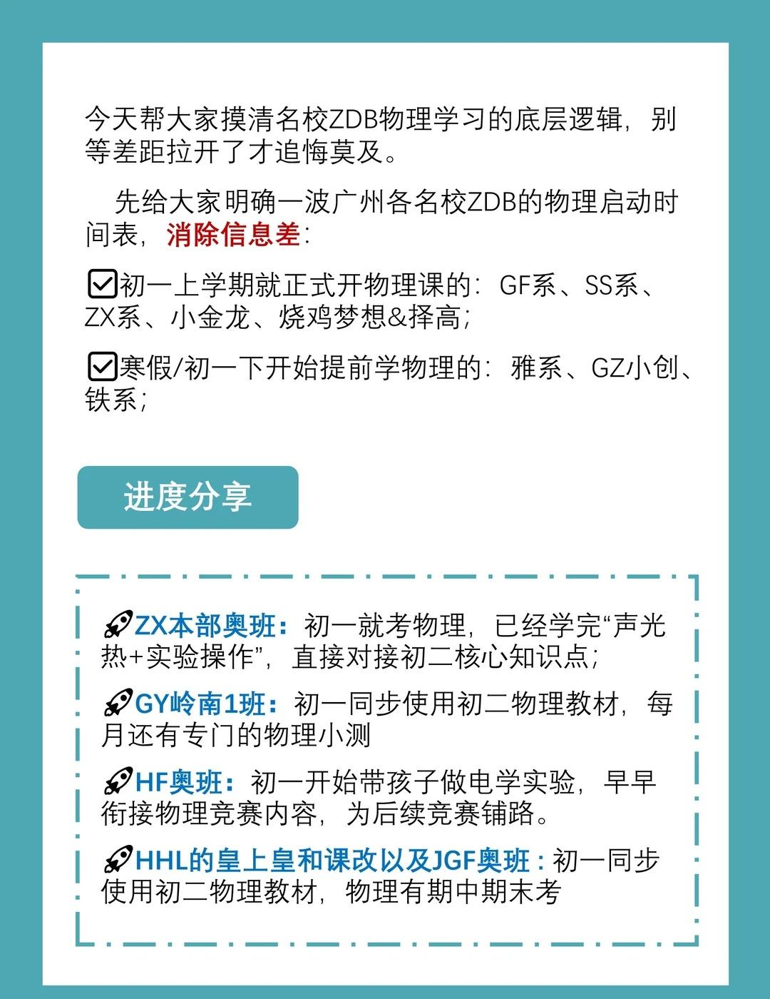 广州初一居然要考物理🔥 宝妈宝爸们注意啦👀刷到这个真的惊到我🤯 现在广州好多名校重点班,初一上期中期末就要考物理了! ⭕不是个别学校超前,而是HF奥班、SS南山这些神校的常规操作,甚至普通一线校ZDB初一都把初二声光热核心内容学完了… 💡别等初二物理难度飙升才后悔!力学+电学占分70%,到时候再追进度又累又容易打击信心😭 💪 六年级想冲名校ZDB、娃对科学实验感兴趣、数学基础还不错的,其实可以提前打基础✨不用盲目刷题,从生活现象和小实验入手,培养兴趣和思维,才能跟上节奏呀! 小升初 广州小升初 广州初中 升学 广州升学 升学规划 广州学校 六年级 择校 中小学