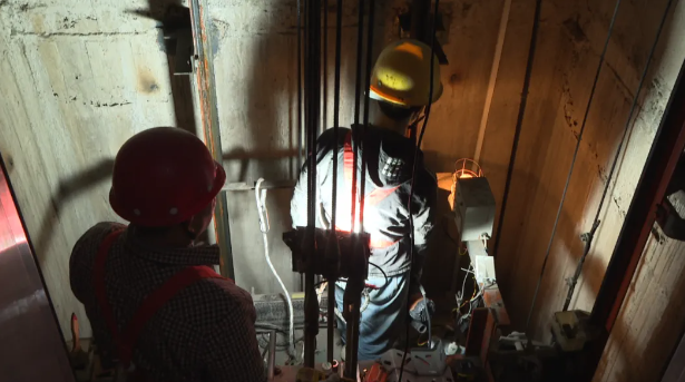 在塔牌大厦住宅小区A栋,记者看到,工作人员正有序安装电梯配件。据了解,该小区A、E栋共4台电梯自1996年投入使用,至今已近30年,设备老化、更新迫在眉睫。