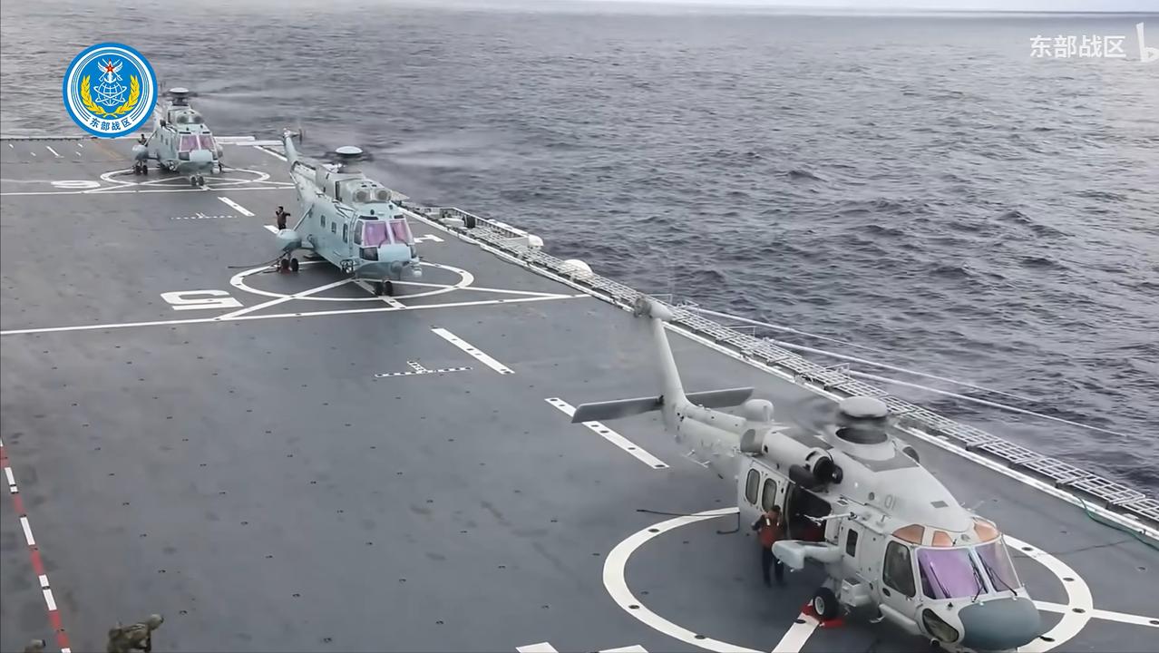 刚结束1万多海里训练的075海南舰编队,其舰上的直-20J和直-8C/L搭载海军