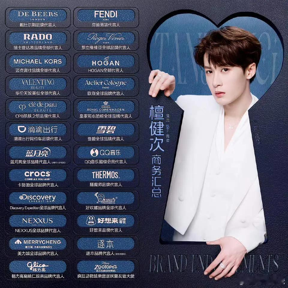 恭喜檀健次第23个全球代言蓝月亮官宣! 2025年檀健次新增15个代言!!!涵盖高奢大牌、国民品牌、成衣、珠宝、腕表、鞋履、美妆、护肤、个护全品类📌 个人商务总数 23 支 📌 年内新增商务 15 支 📌 全球 Title 商务 14 支📌 年内升全球 Title 商务 5 支📌 全品类奢代大满贯📌 最高 Title 商务 21 支 📌 首位代言人 / 全球代言人 Title 11支