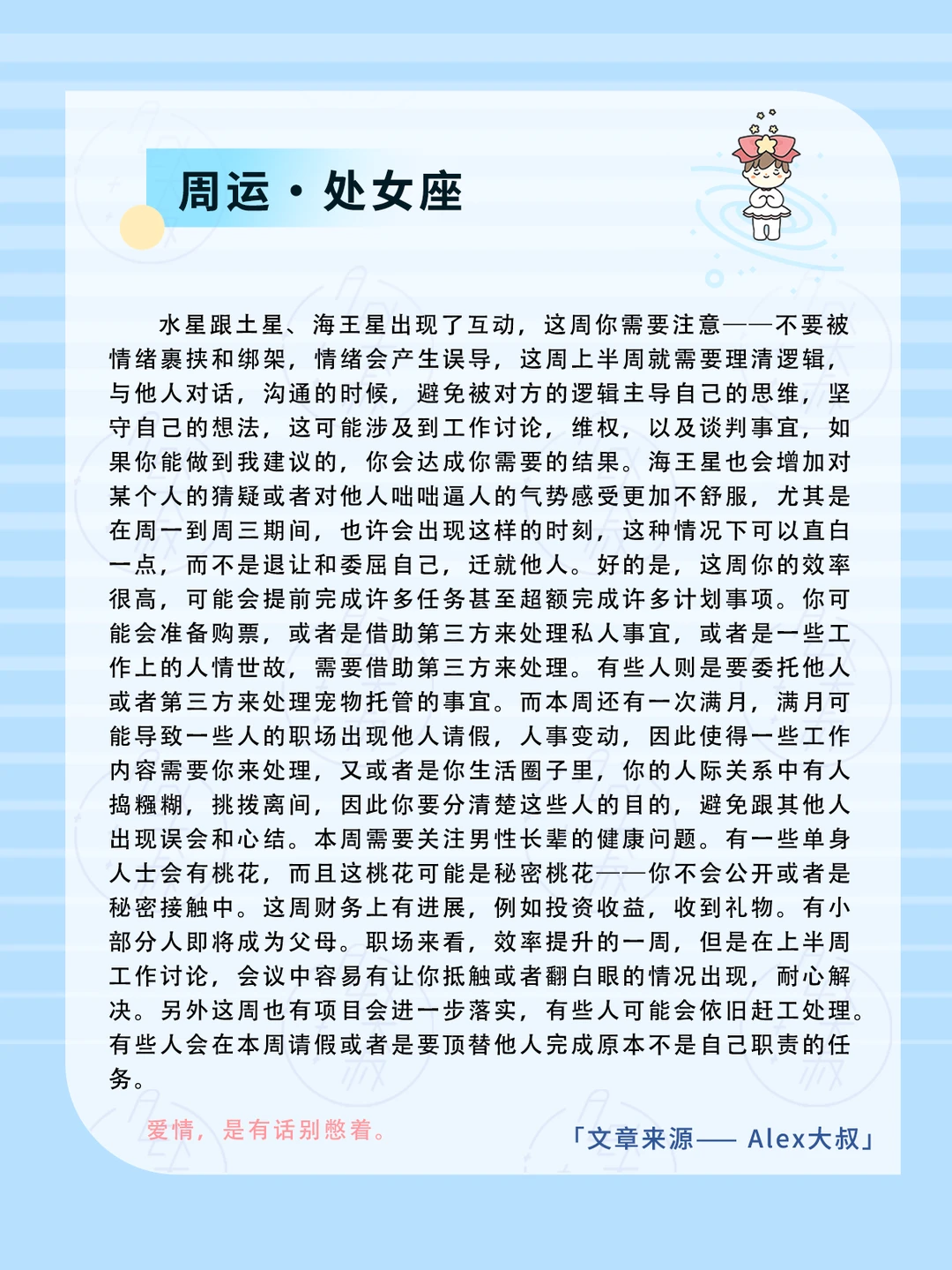 针对这周的星象,我们需要注意这些问题,或者是在日程与他人对话,沟通,执行工作或者人际相处中,要注意这些事宜:
