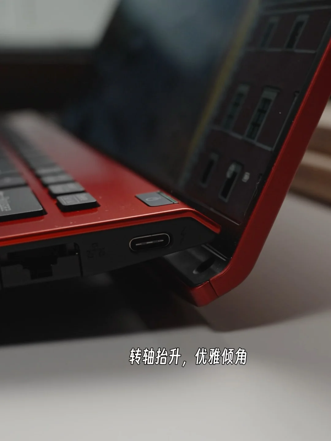 转轴设计我也很喜欢,打开就会把键盘抬起来一个优雅的倾角✍️