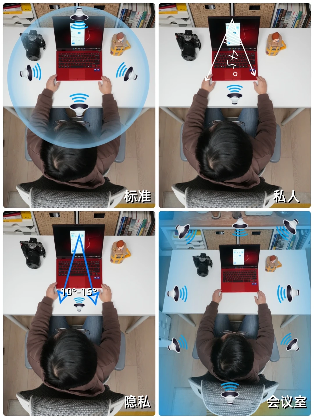 多麦克风模式可选标准/私人/隐私/会议室,按场景切换就行🎧