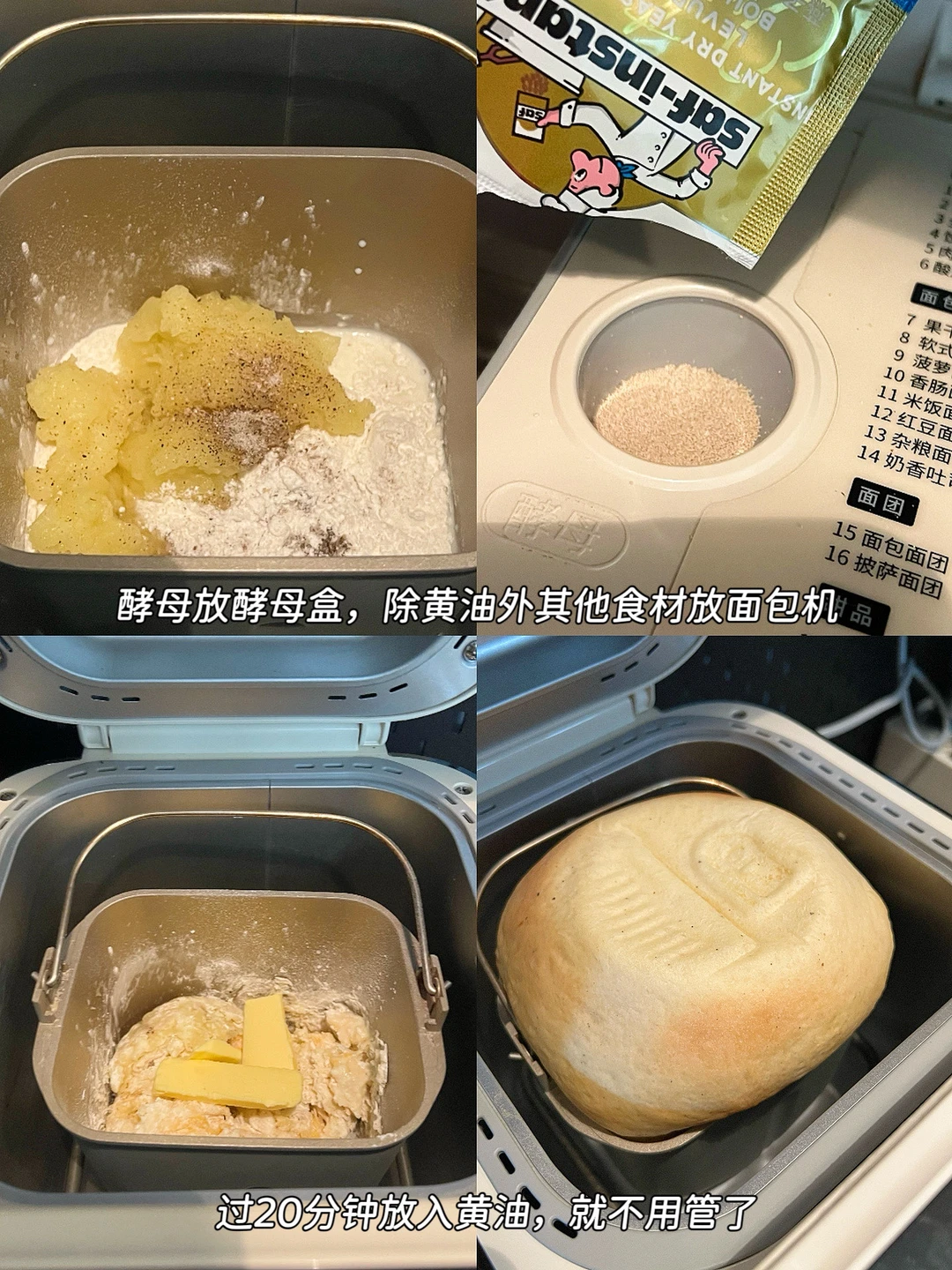 1️⃣酵母放酵母盒,除黄油外其他食材放面包机