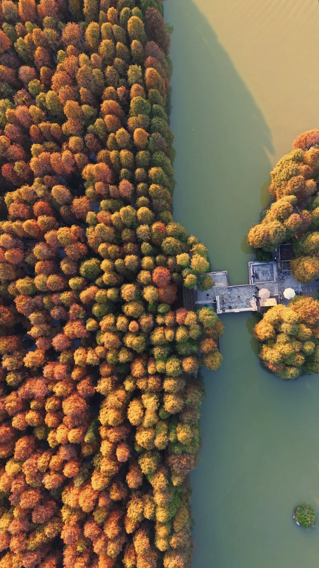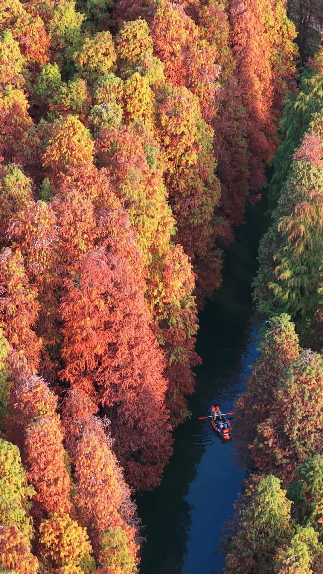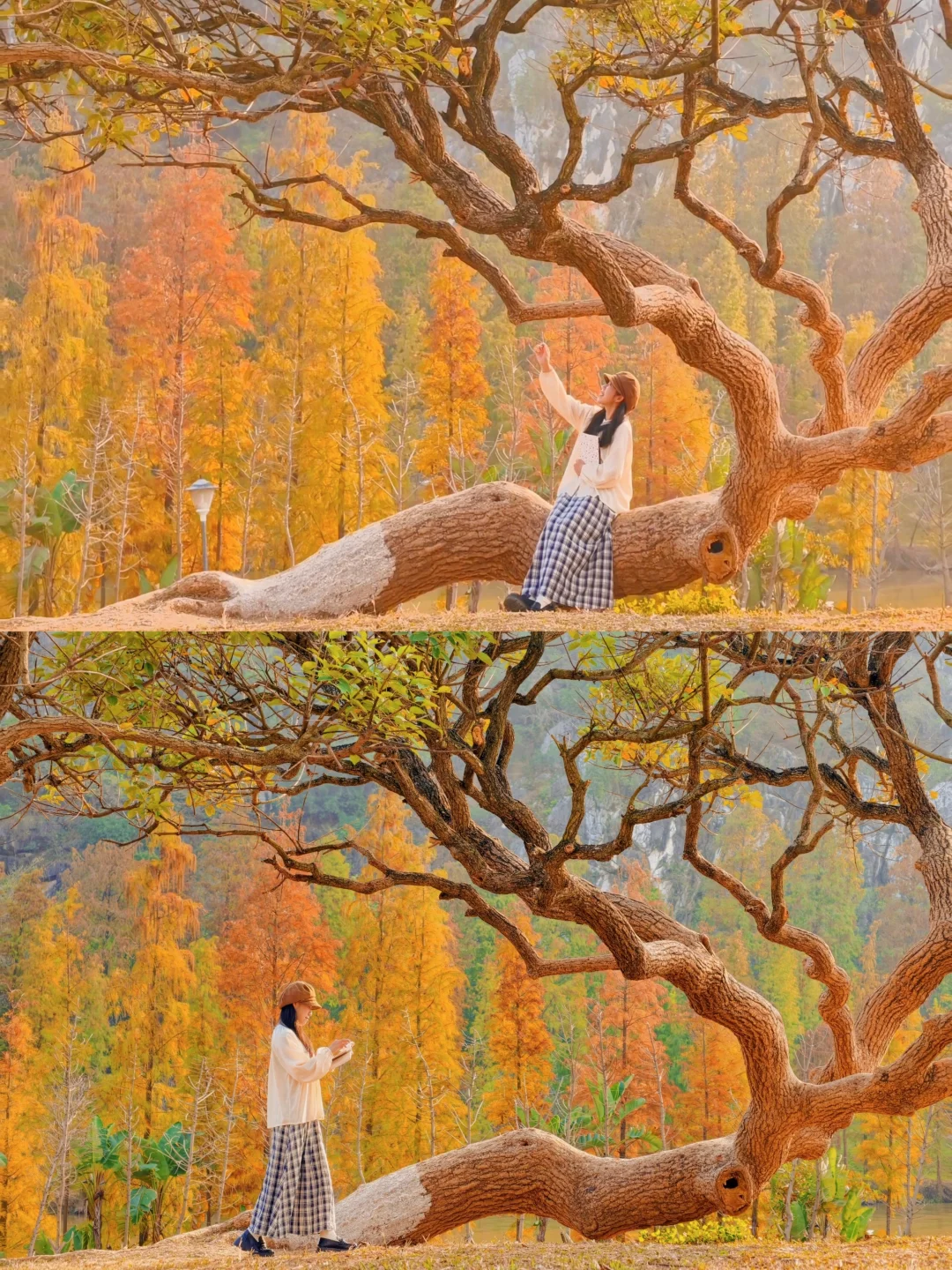 冬季限定的浪漫秋色,在七星岩喀斯特山体下一大片渐红的落羽杉树林,在湖边大草坪还有一颗魔幻的歪脖子树,随手一拍都像是一幅焦糖色的油画🖼️