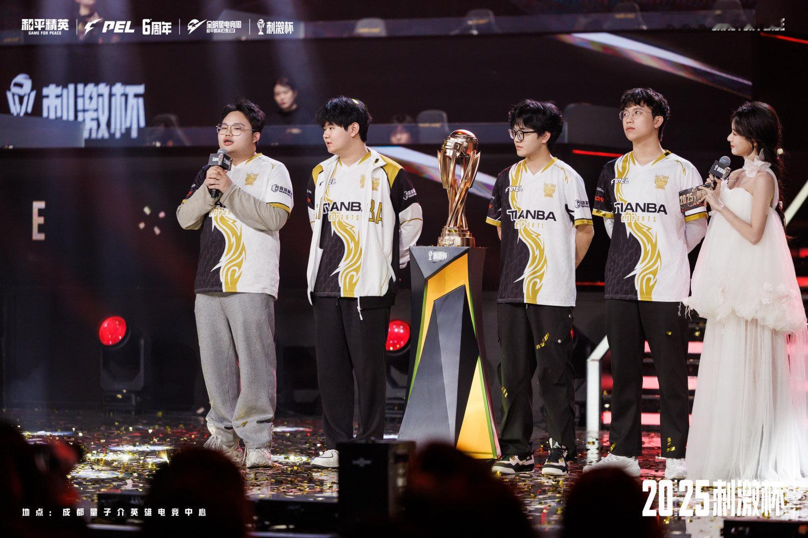 2025和平精英全明星电竞周【2025和平精英刺激杯总决赛】冠军战队返图2025和平精英刺激杯总决赛落下帷幕,经过两日的精彩角逐,一路高歌猛进所向披靡,最终成功夺得本届刺激杯总冠军荣誉,斩获MVP,他们为今年的比赛征程画下一个完美的句号!快一起通过返图回顾他们的比赛瞬间吧~天霸刺激杯冠军