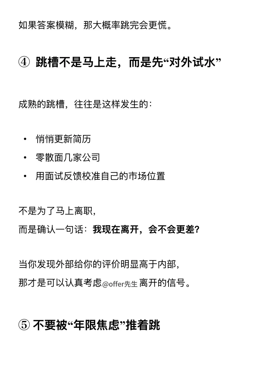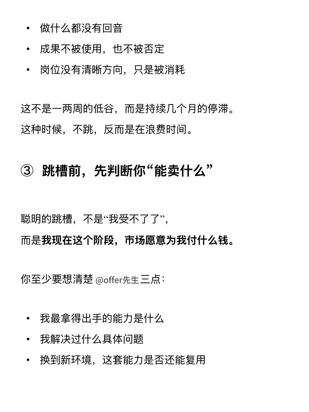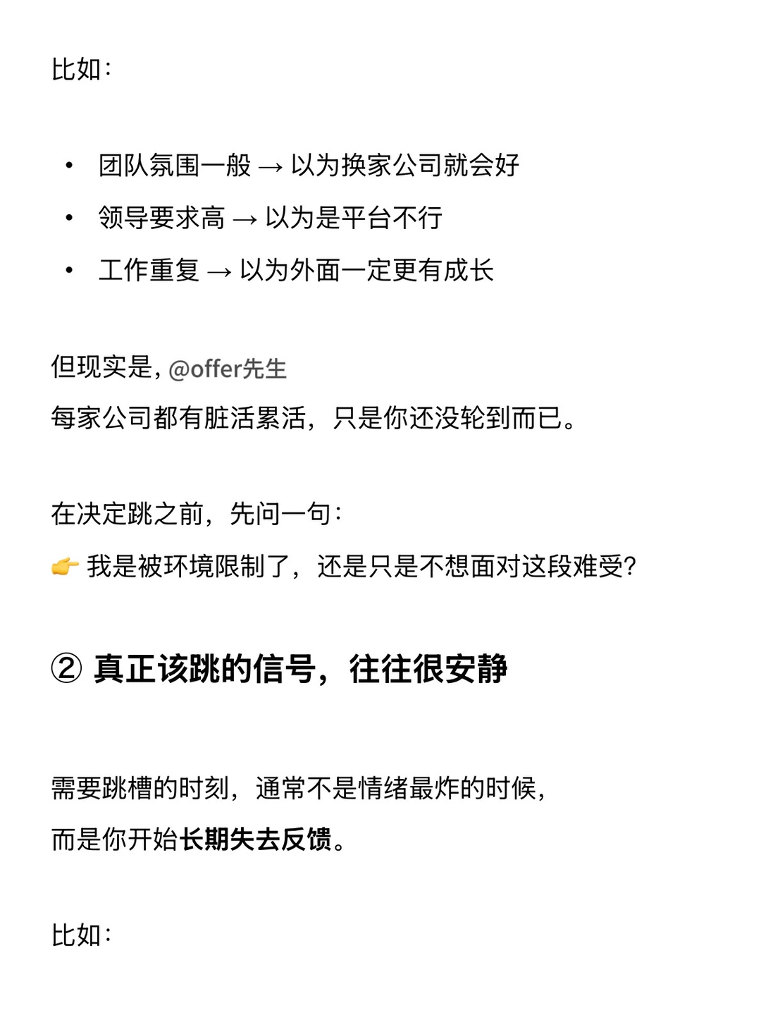 很多人把跳槽当成“逃离不顺”的解法, 但真正让人越跳越稳的,从来不是勇气,而是判断。 … 一个认真分享“找工作”干货的账号,真诚、有料、不说空话 ·
