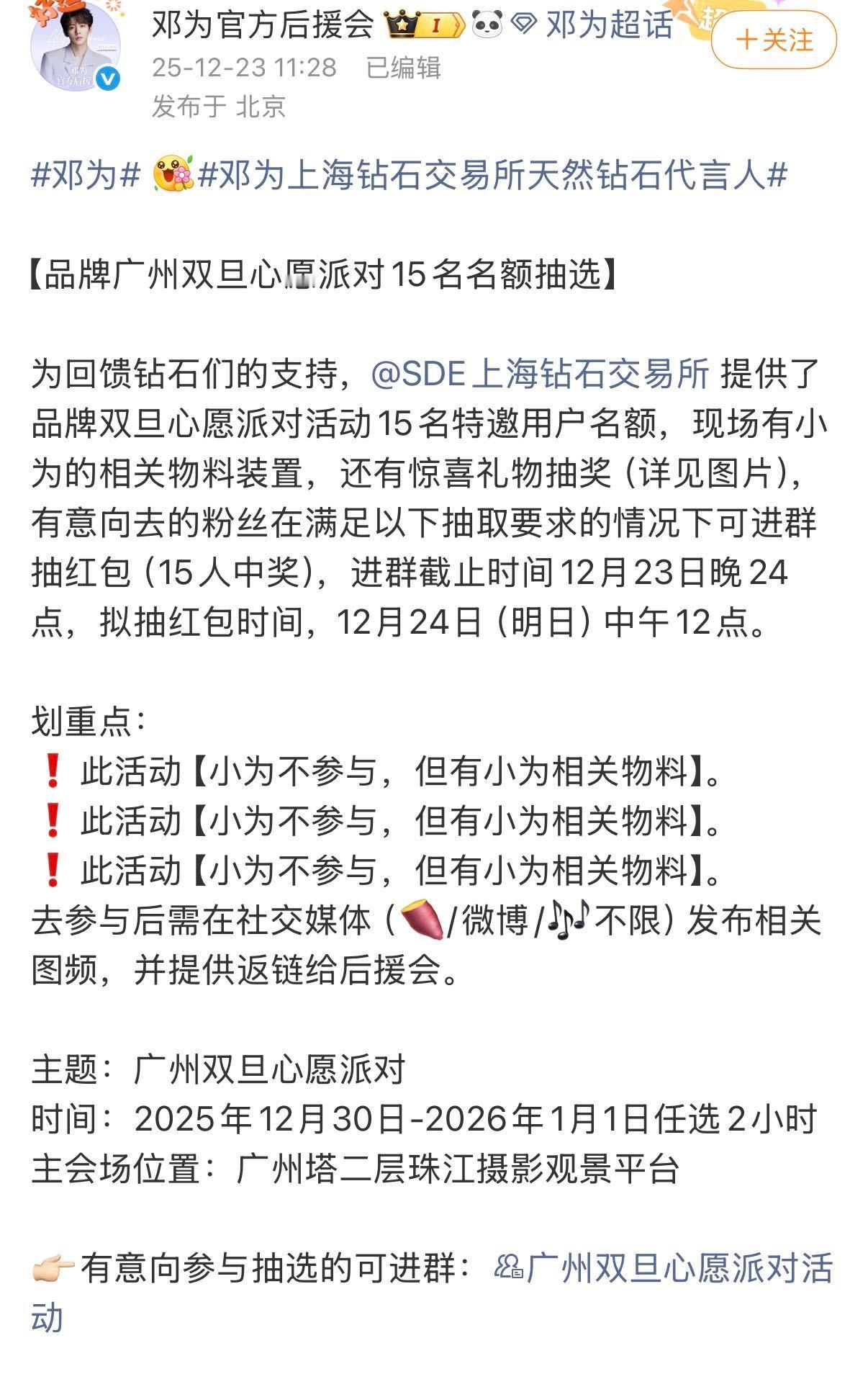 邓为代言人待遇真给我看爽了!官宣邓为是代言人时,线下线上排面拉满,主打一个财大气粗!甚至在热播综艺花少里都有邓为的天然钻石广告,帅哥配天然钻石,好养眼!这次还特邀粉丝参与线下打卡,不仅准备了邓为物料展示,还有特别的礼物,谁懂这种双向奔赴的幸福感!线下惊喜多多,大家快冲呀